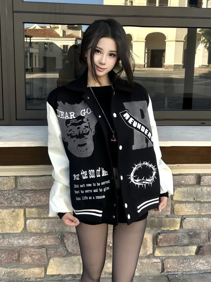 아마존 레터링 자수 가죽 배색 야구점퍼 크로스보더 트렌드 브랜드 유럽 및 미국 스트리트 스타일 숏 자켓 여성 상의