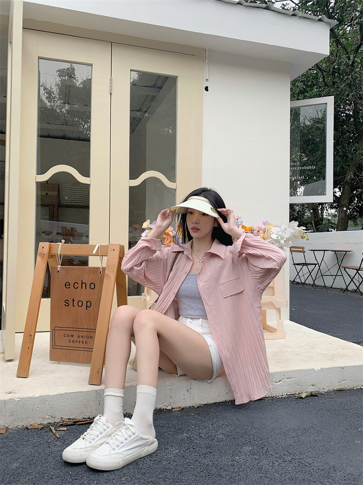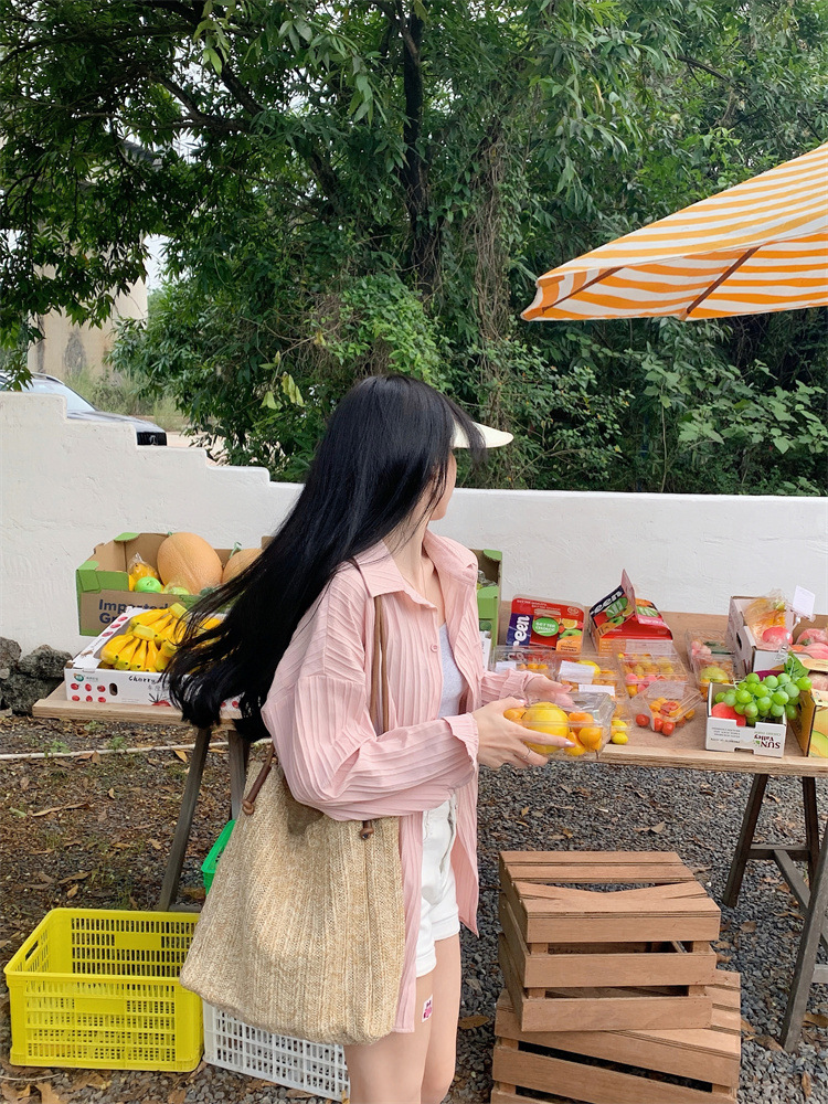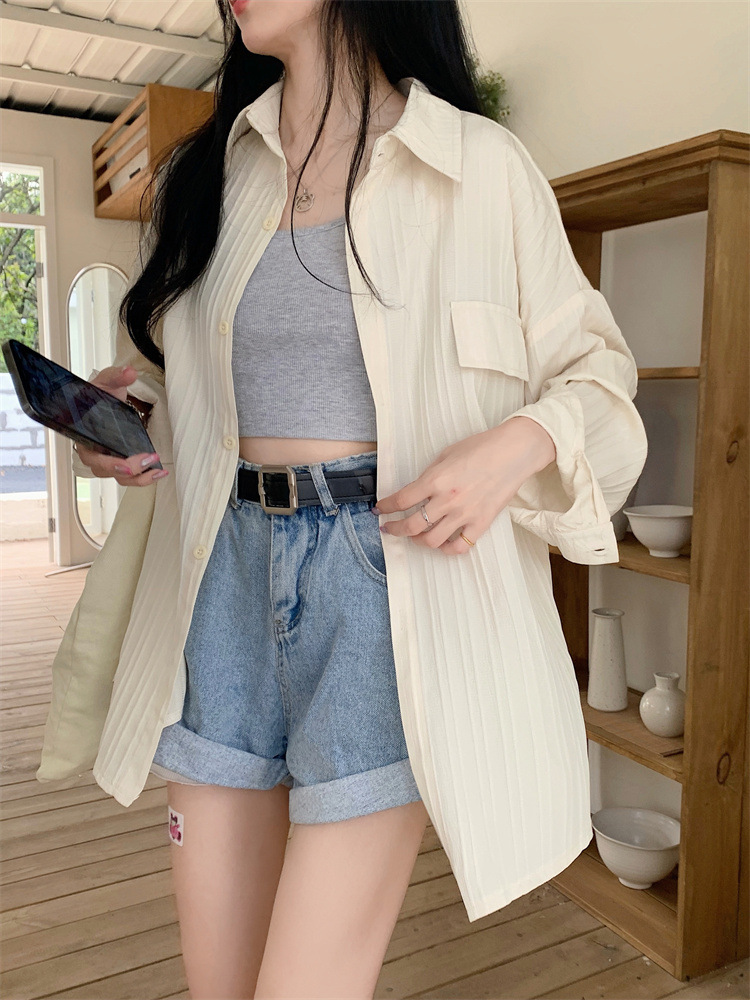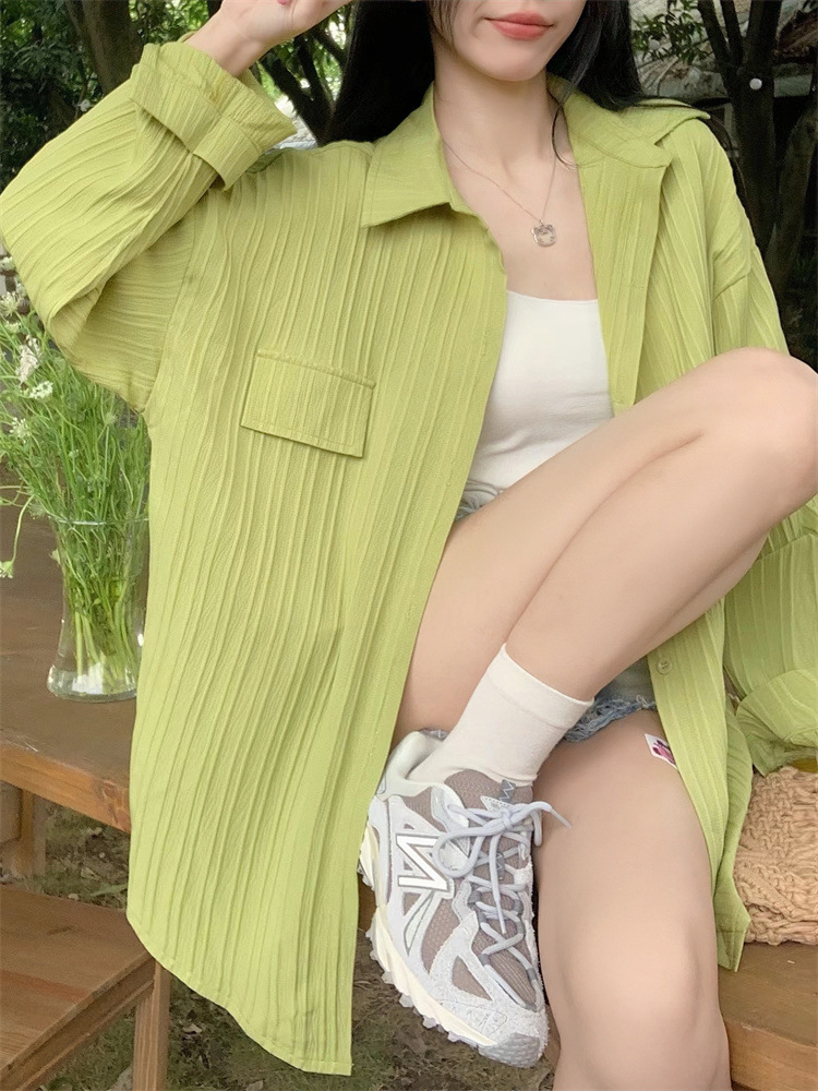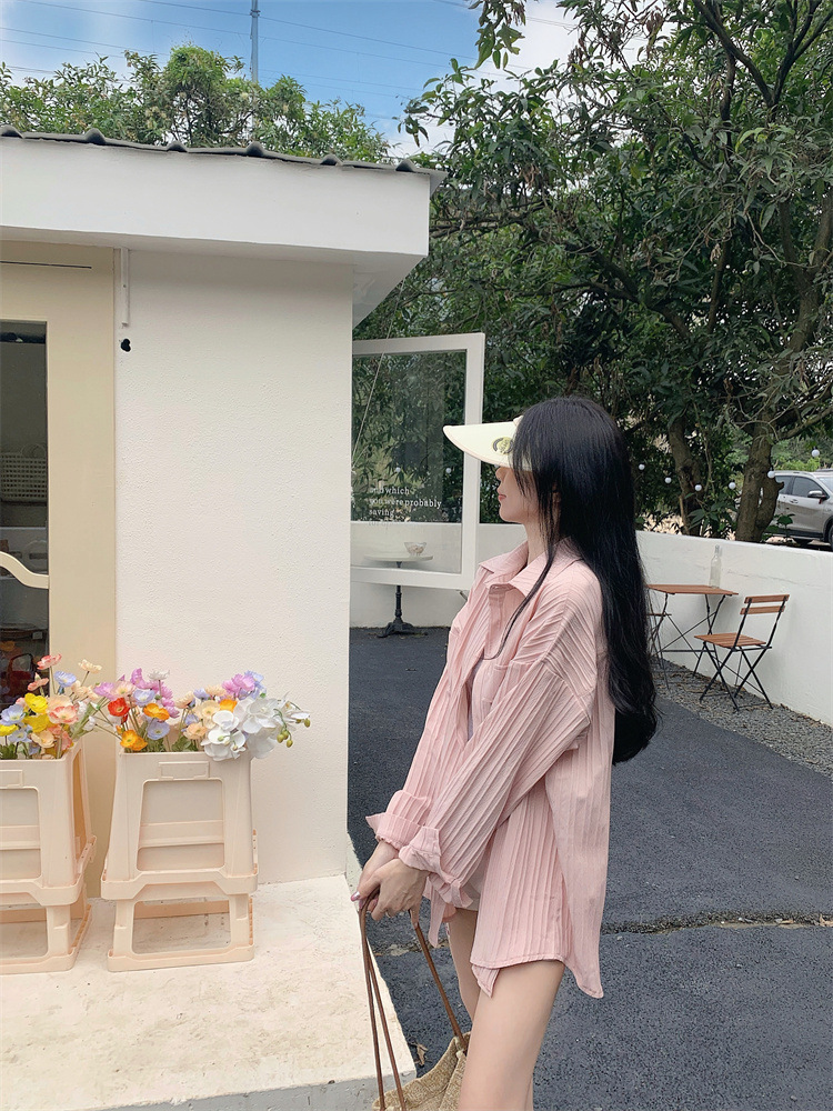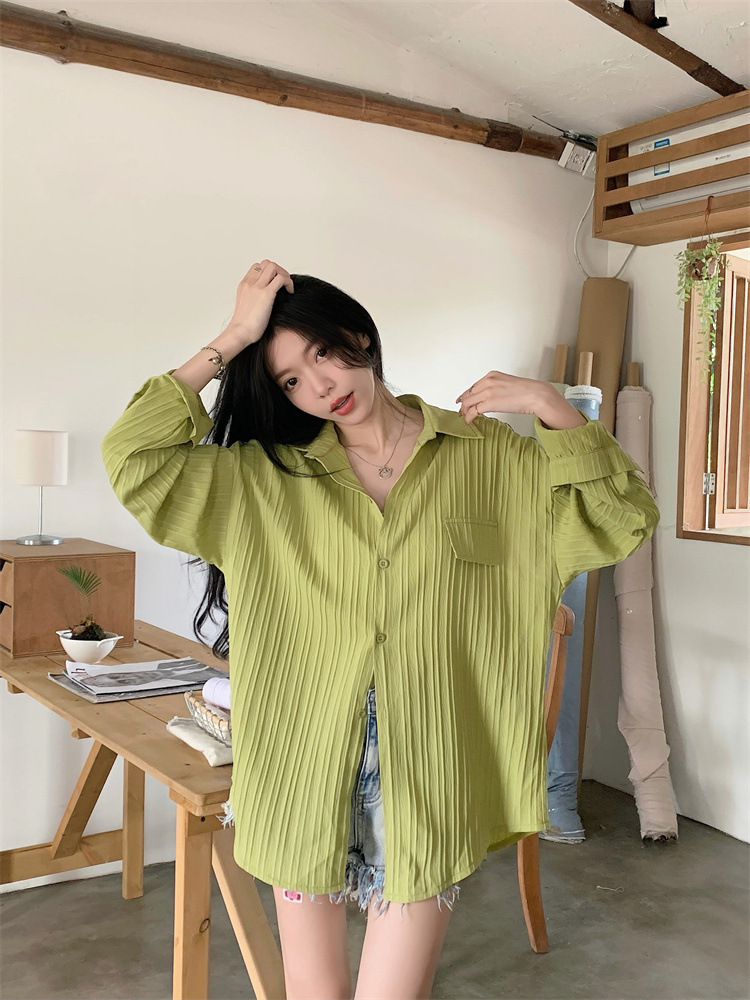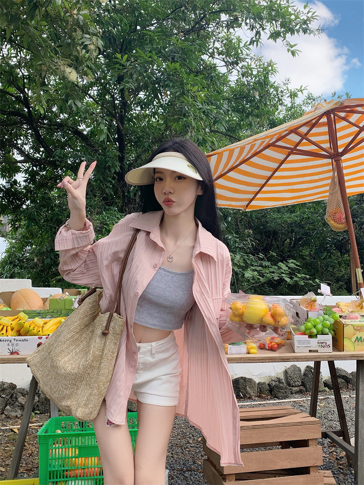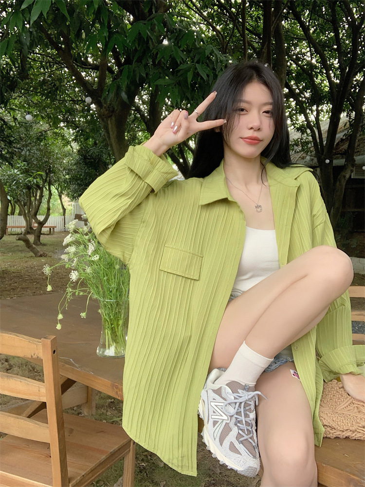 플러스 사이즈 여성의 얇은 줄무늬 선스크린 쉬폰 셔츠 봄과 가을 통통녀 중장 엉덩이 커버 재킷 어깨 탑스토어 가기