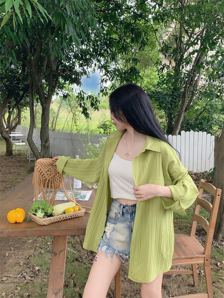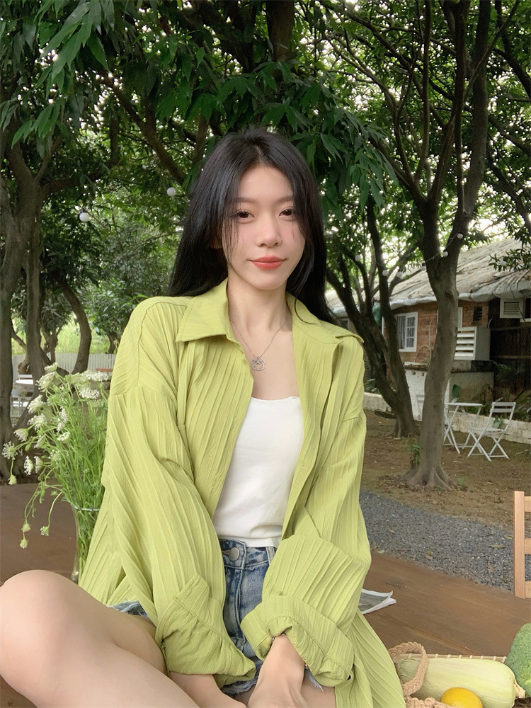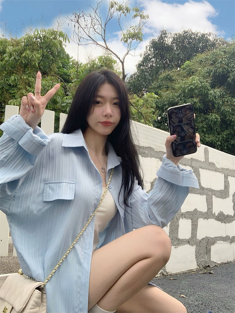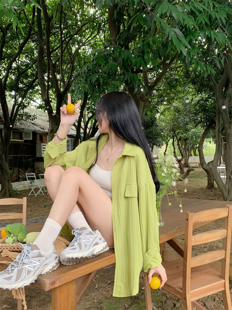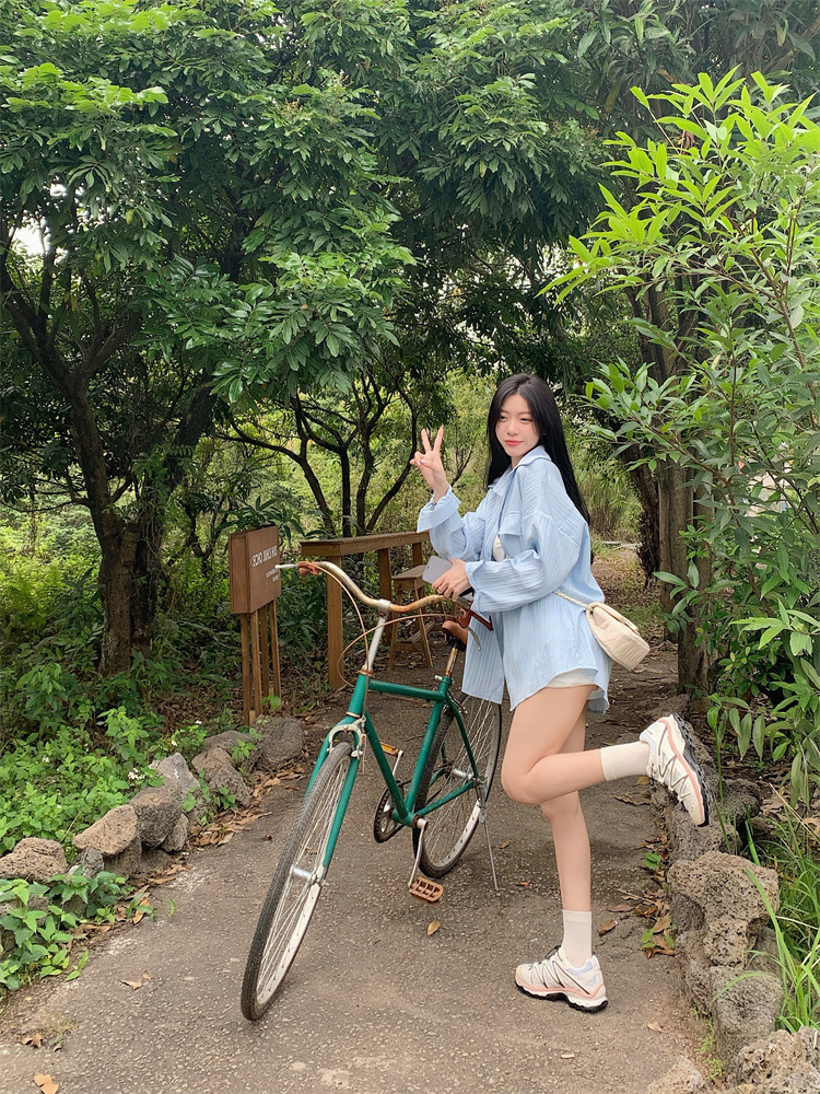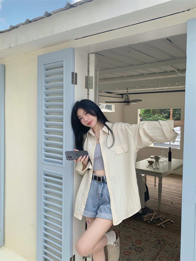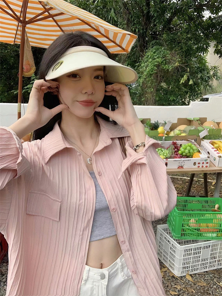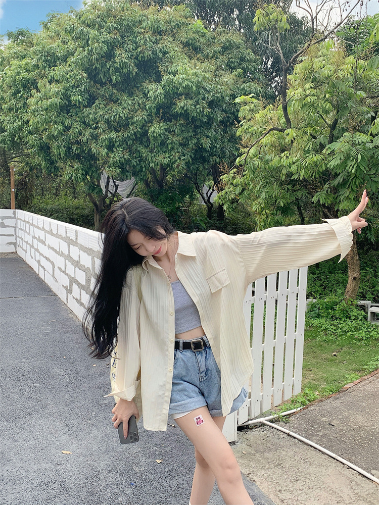 플러스 사이즈 여성의 얇은 줄무늬 선스크린 쉬폰 셔츠 봄과 가을 통통녀 중장 엉덩이 커버 재킷 어깨 탑스토어 가기
