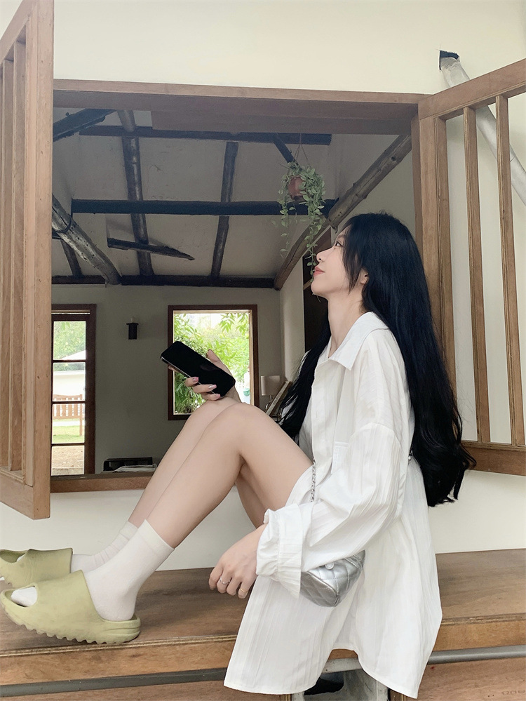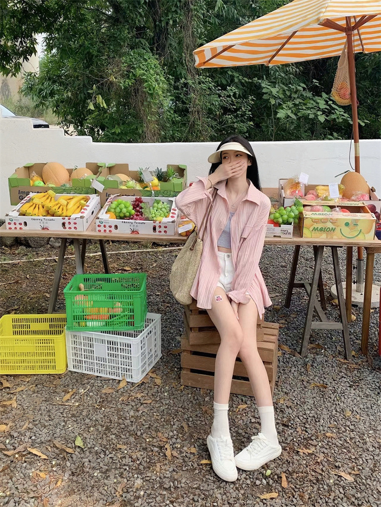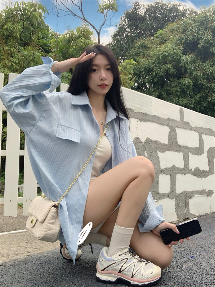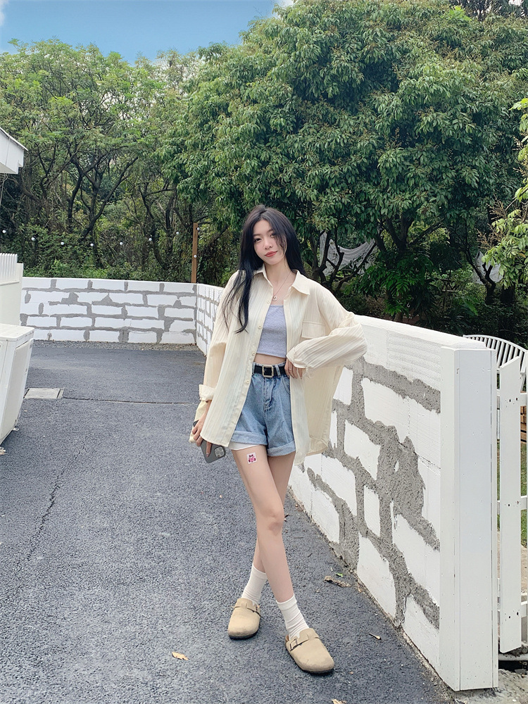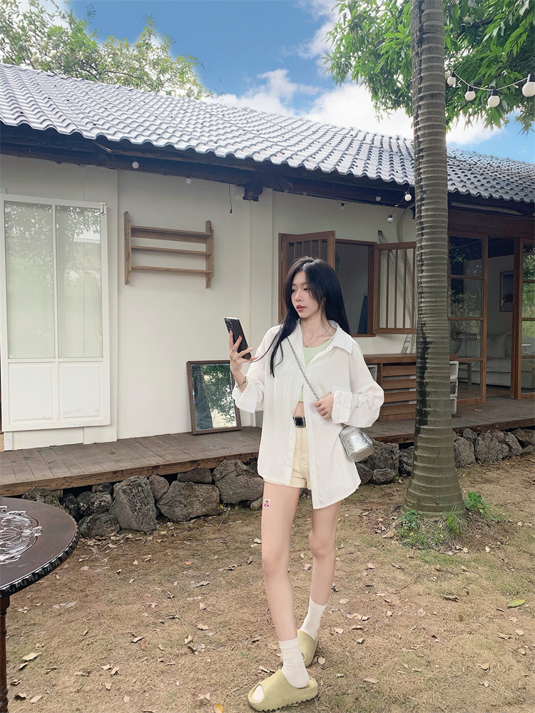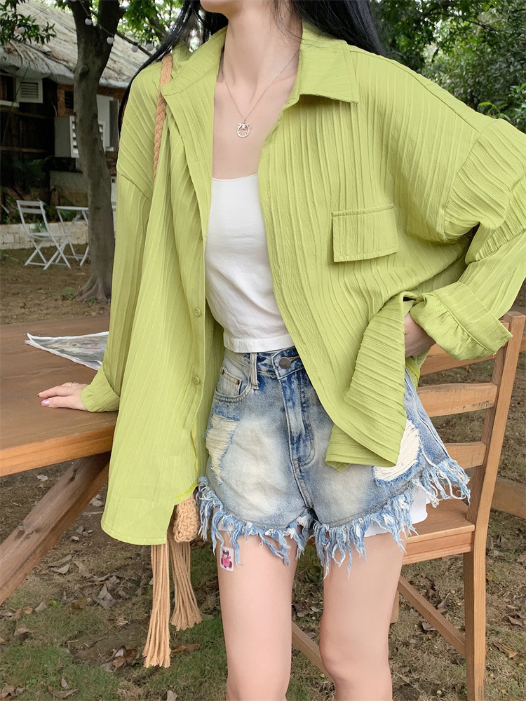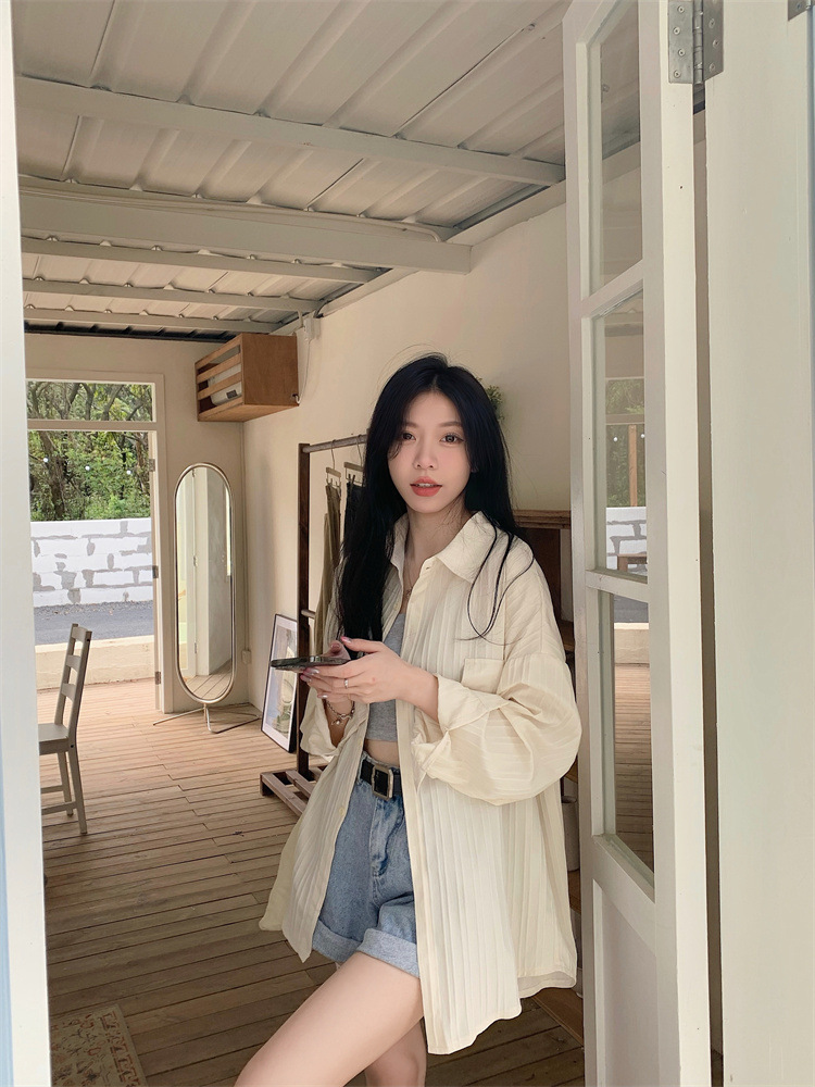 플러스 사이즈 여성의 얇은 줄무늬 선스크린 쉬폰 셔츠 봄과 가을 통통녀 중장 엉덩이 커버 재킷 어깨 탑스토어 가기