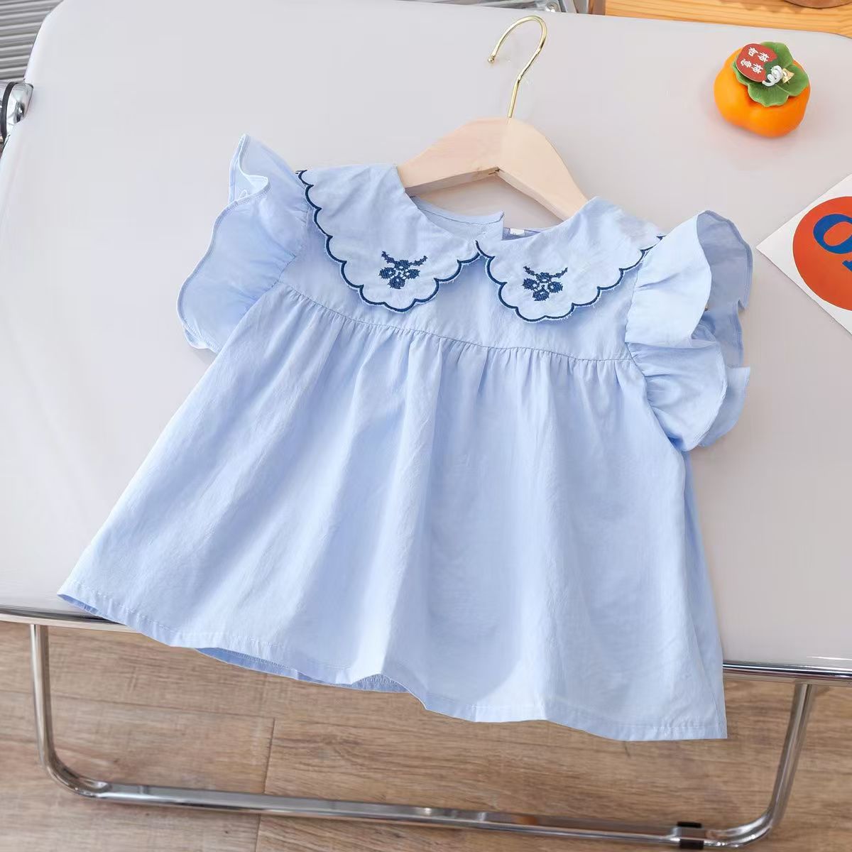 여자 반팔 톱 2025 여름 새로운 중소 어린이 의류 한국 스타일 귀여운 인형 셔츠 아기 단색 옷스토어 가기