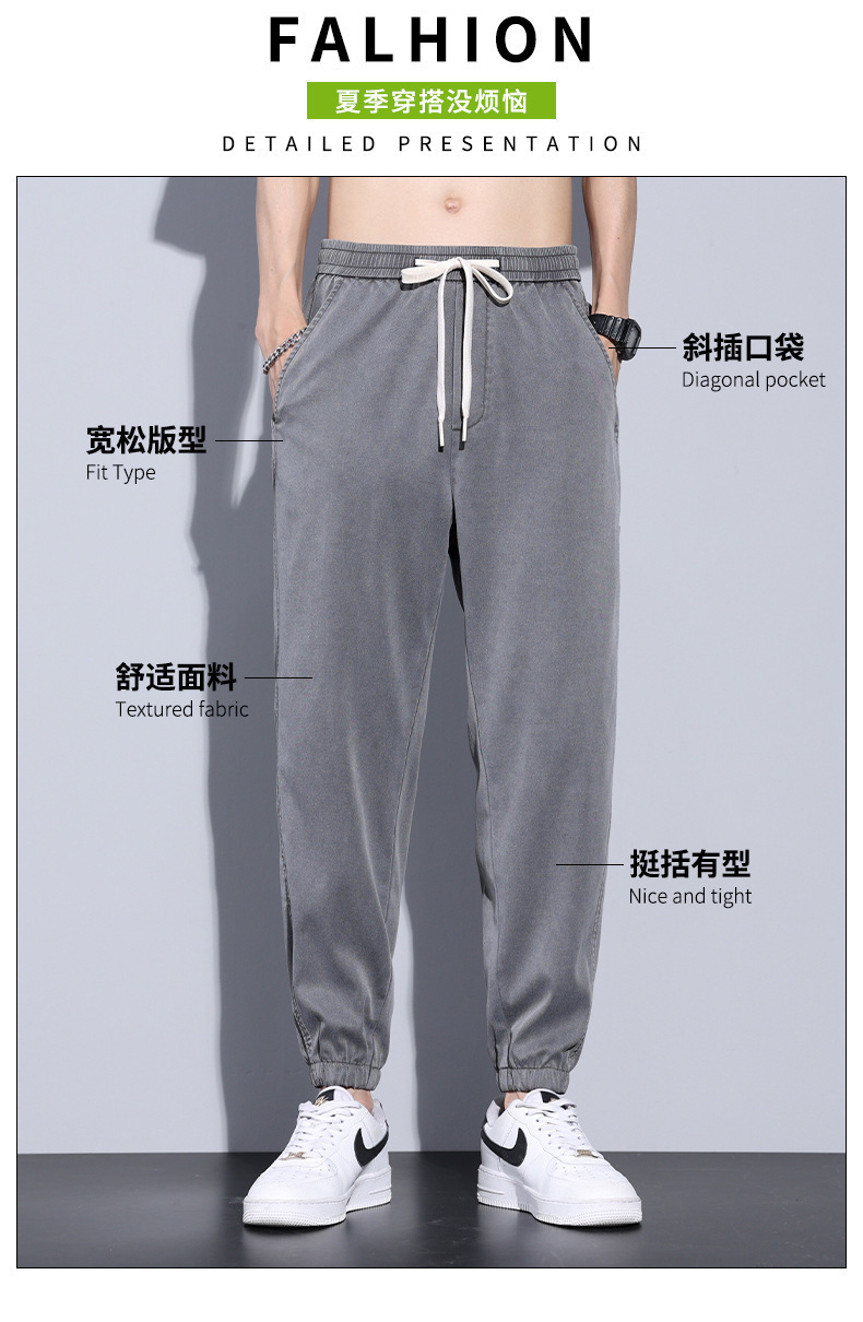 TikTok Tencel 청바지 남성용 얇은 느슨한 다리 발가락 아이스 실크 캐주얼 스포츠 Harlan 자른 바지