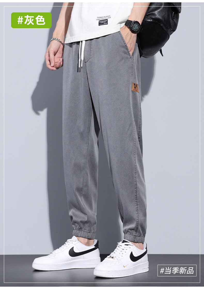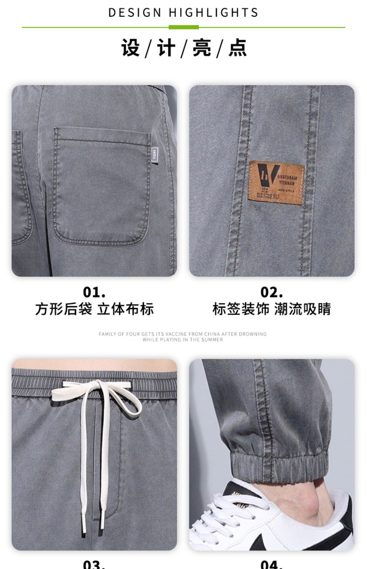 TikTok Tencel 청바지 남성용 얇은 느슨한 다리 발가락 아이스 실크 캐주얼 스포츠 Harlan 자른 바지스토어 가기