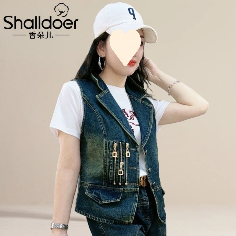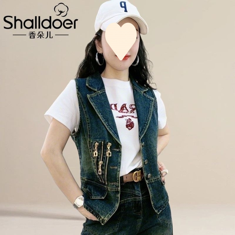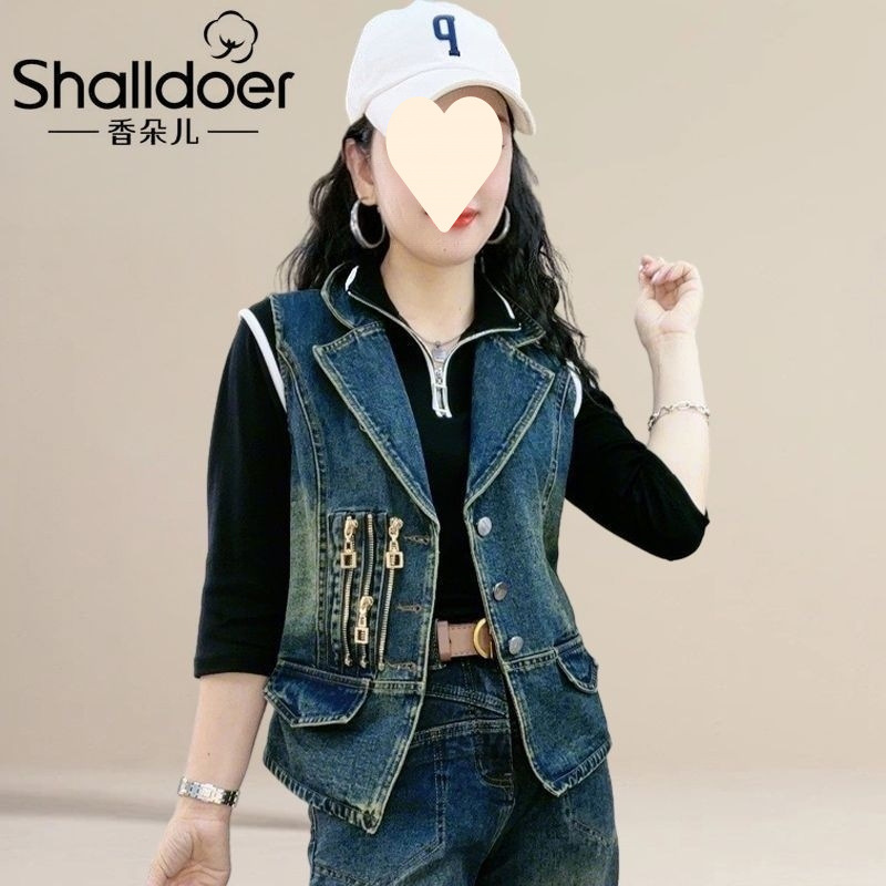 데님 조끼 여자 2024 봄과 가을 새로운 한국 스타일 패션 레트로 민소매 옷깃 조끼 캐주얼 올 매치 재킷스토어 가기