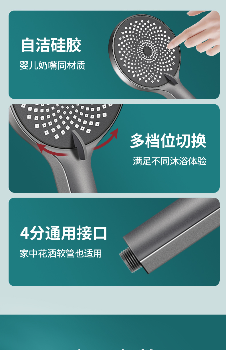 • [실버세트1] 3단 슈퍼차저 샤워기 + 호스 1.5m개