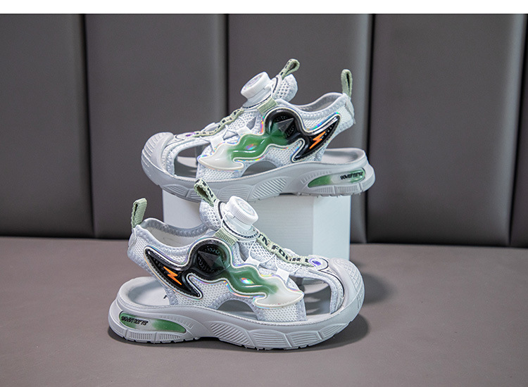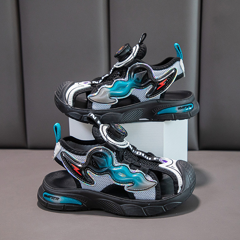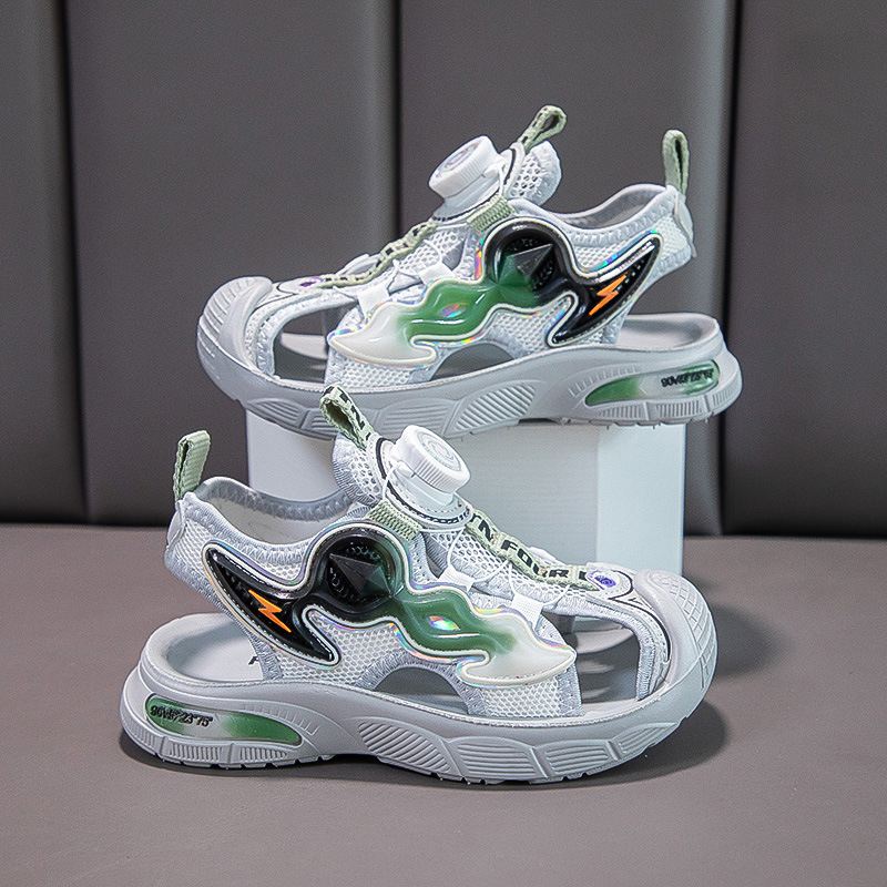 소년의 발가락으로 덮인 샌들 여름 새로운 어린이 해변 샌들 속이 빈 통기성 중형 소년 스포츠 샌들
