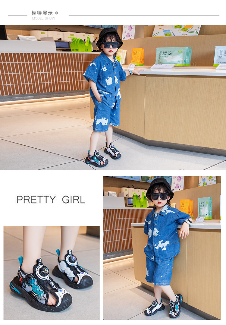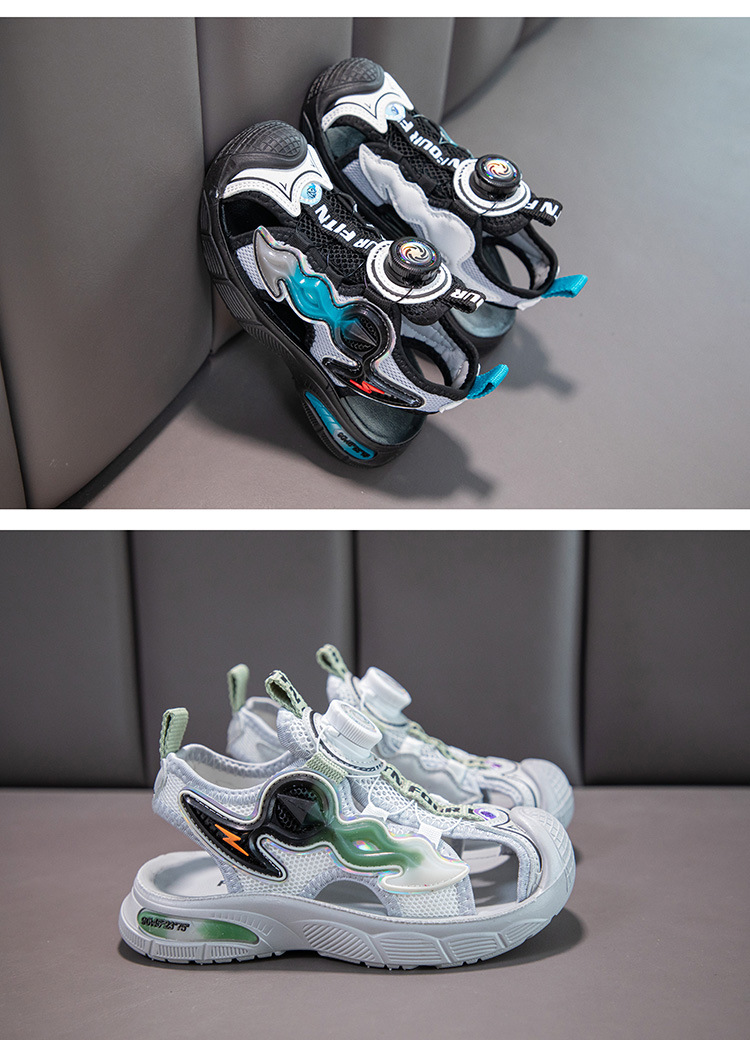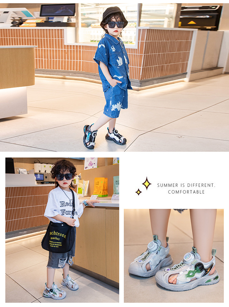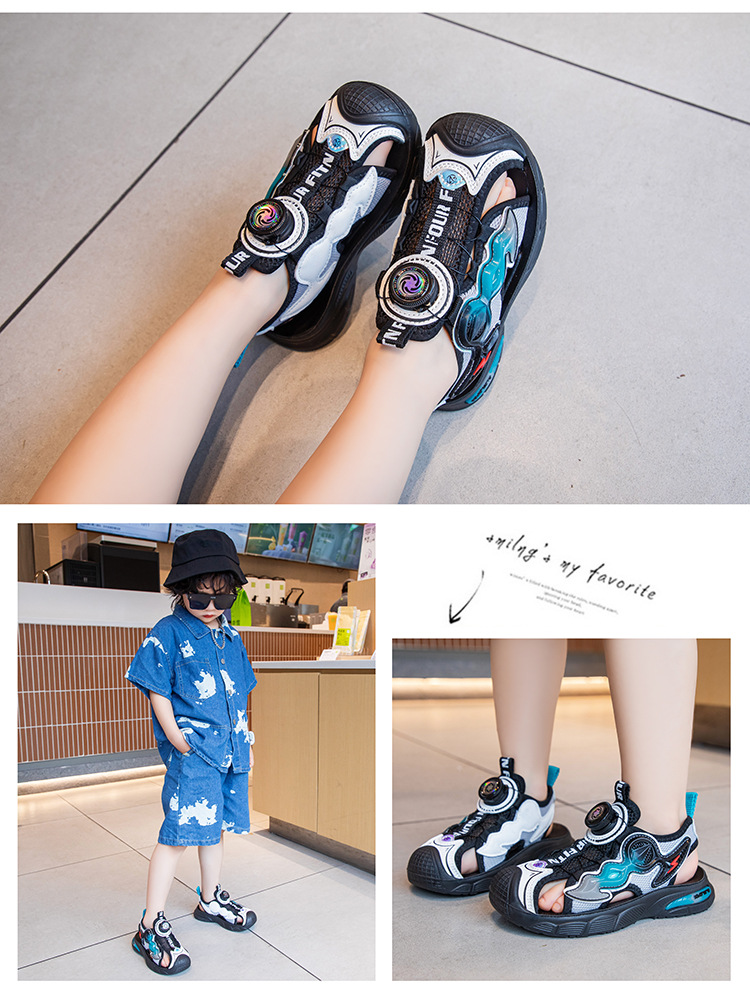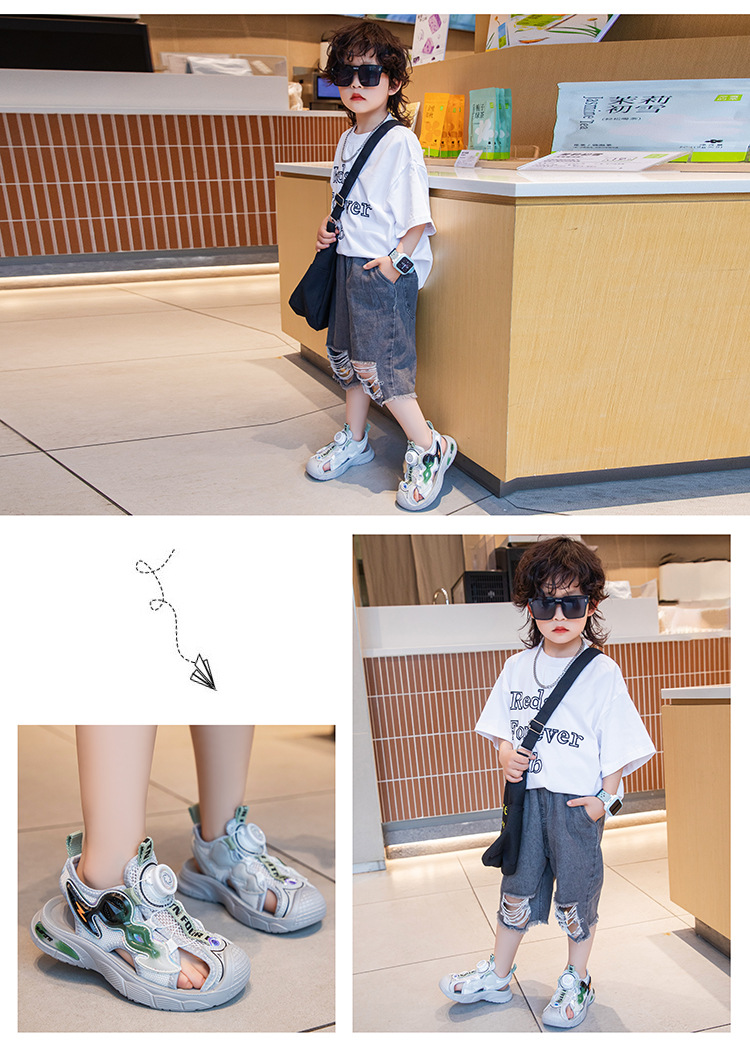 소년의 발가락으로 덮인 샌들 여름 새로운 어린이 해변 샌들 속이 빈 통기성 중형 소년 스포츠 샌들스토어 가기