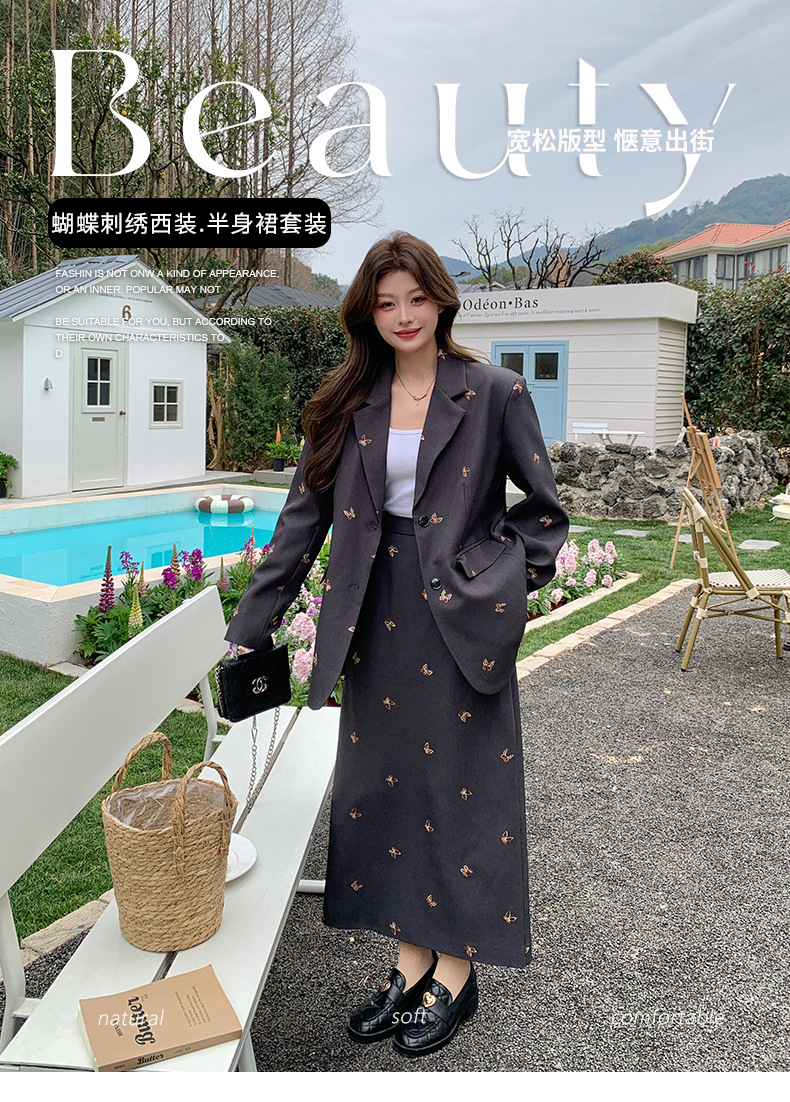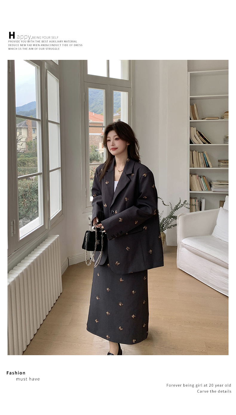 [멩메이] 25 봄 스타일 패션 세트 원피스 여성 세련된 자수 하이 엔드 작은 세트 투피스 세련된 세트스토어 가기