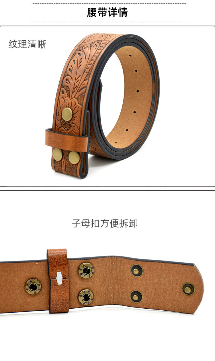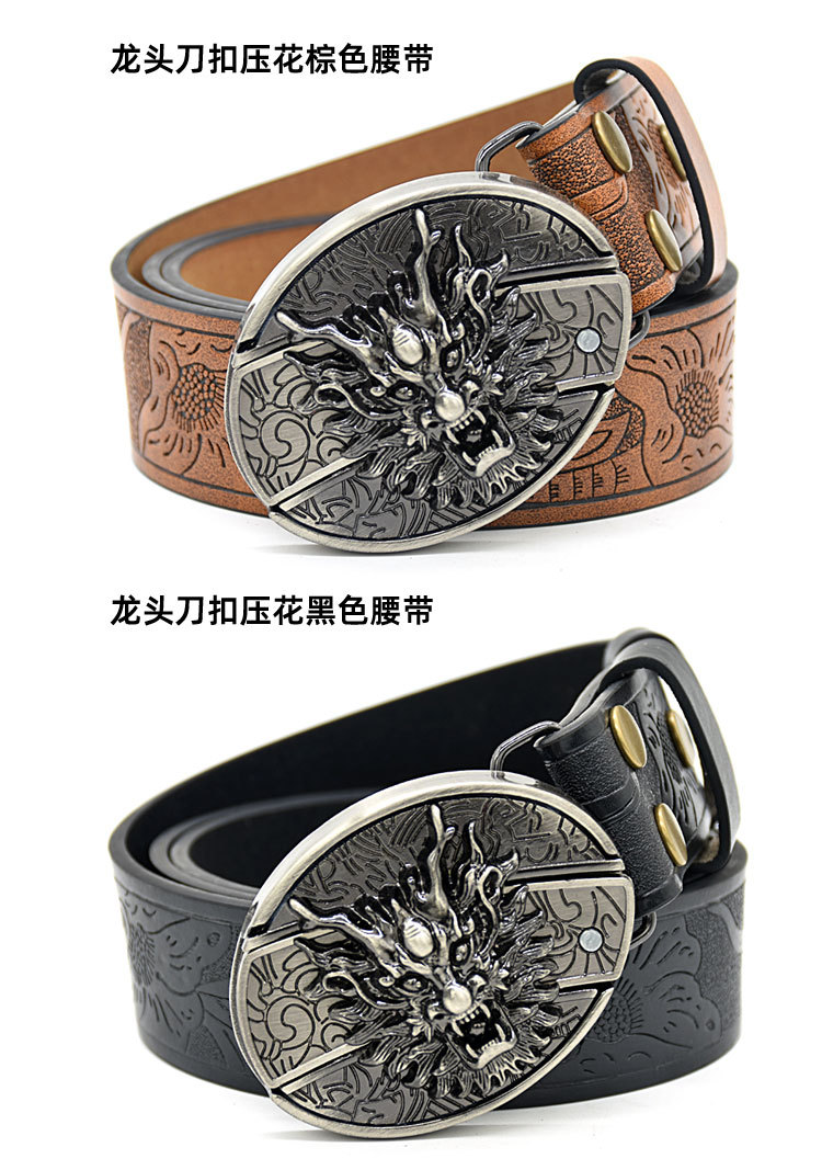 남성용 벨트 나이프 양각 벨트 부드러운 버클 맞춤형 학생 패션 인쇄 새겨진 국경 간 대외 무역 벨트 남성용스토어 가기