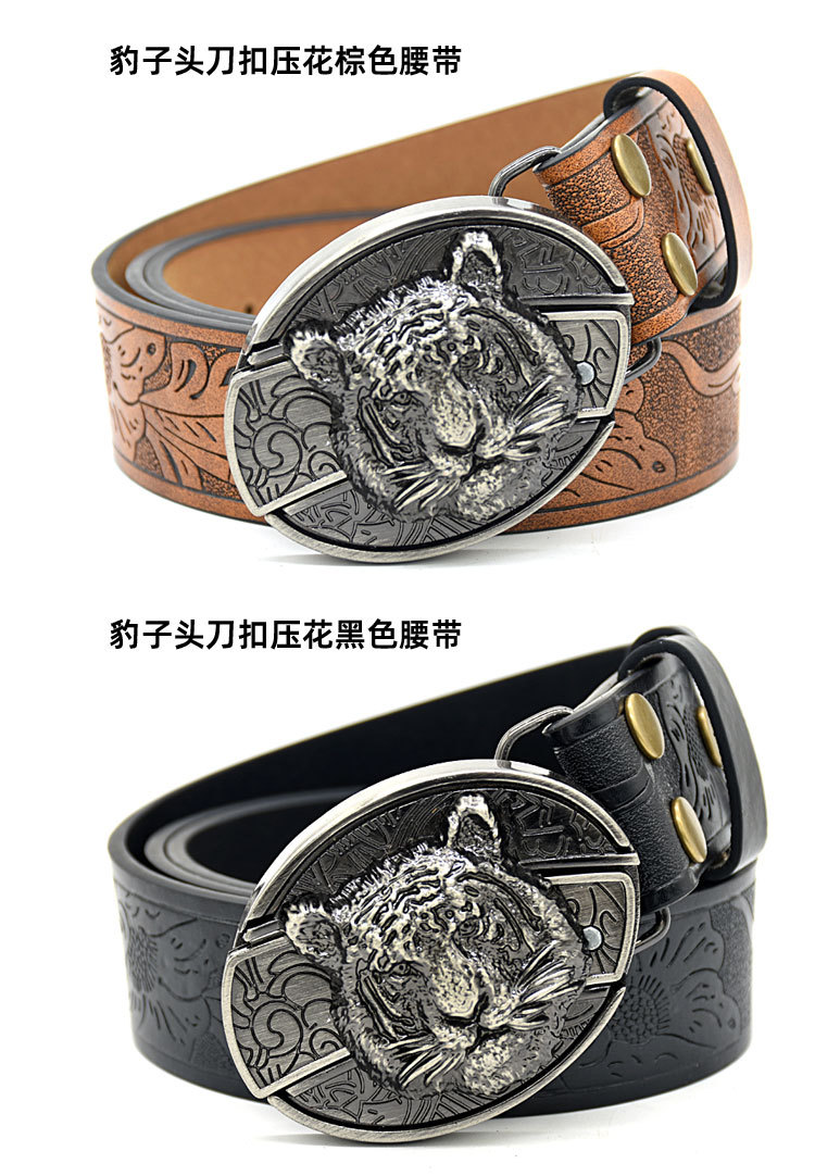 • 표범 머리 칼 버클 양각 갈색