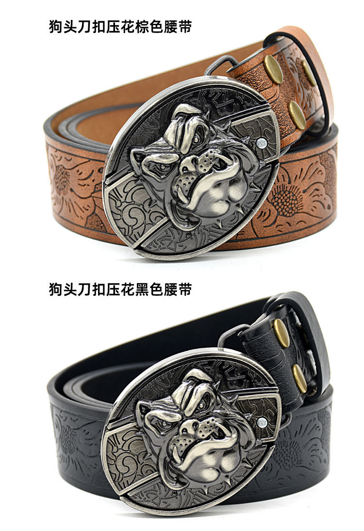 • 개 머리 칼 버클 양각 갈색