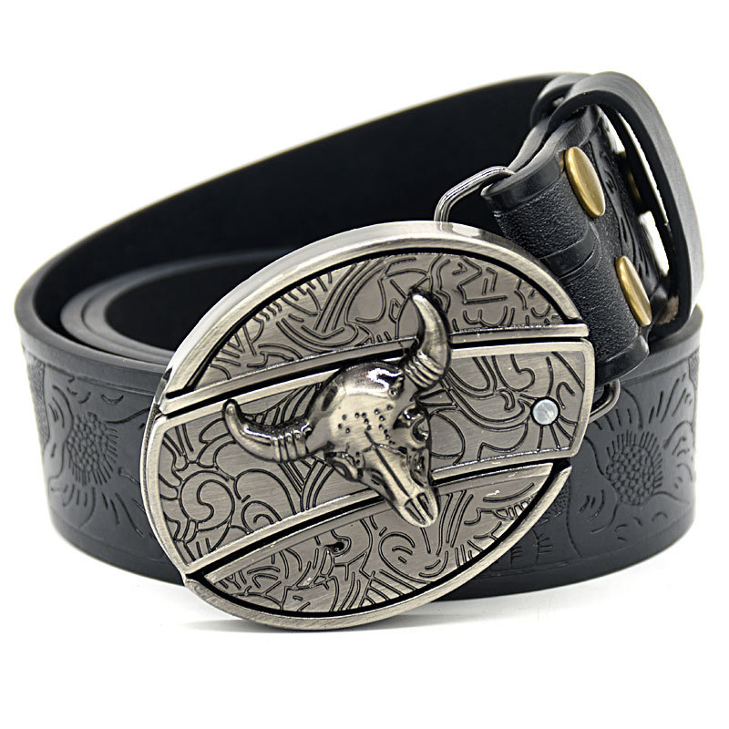 • 황소 머리 칼 버클 양각 검정색