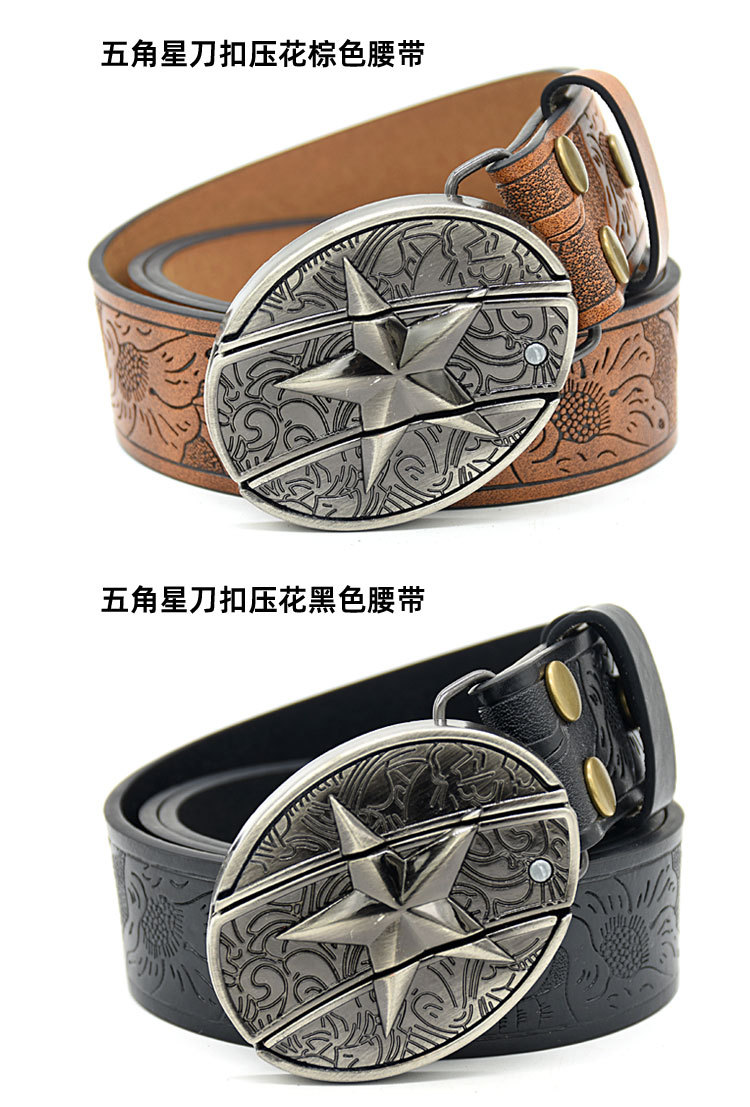 남성용 벨트 나이프 양각 벨트 부드러운 버클 맞춤형 학생 패션 인쇄 새겨진 국경 간 대외 무역 벨트 남성용