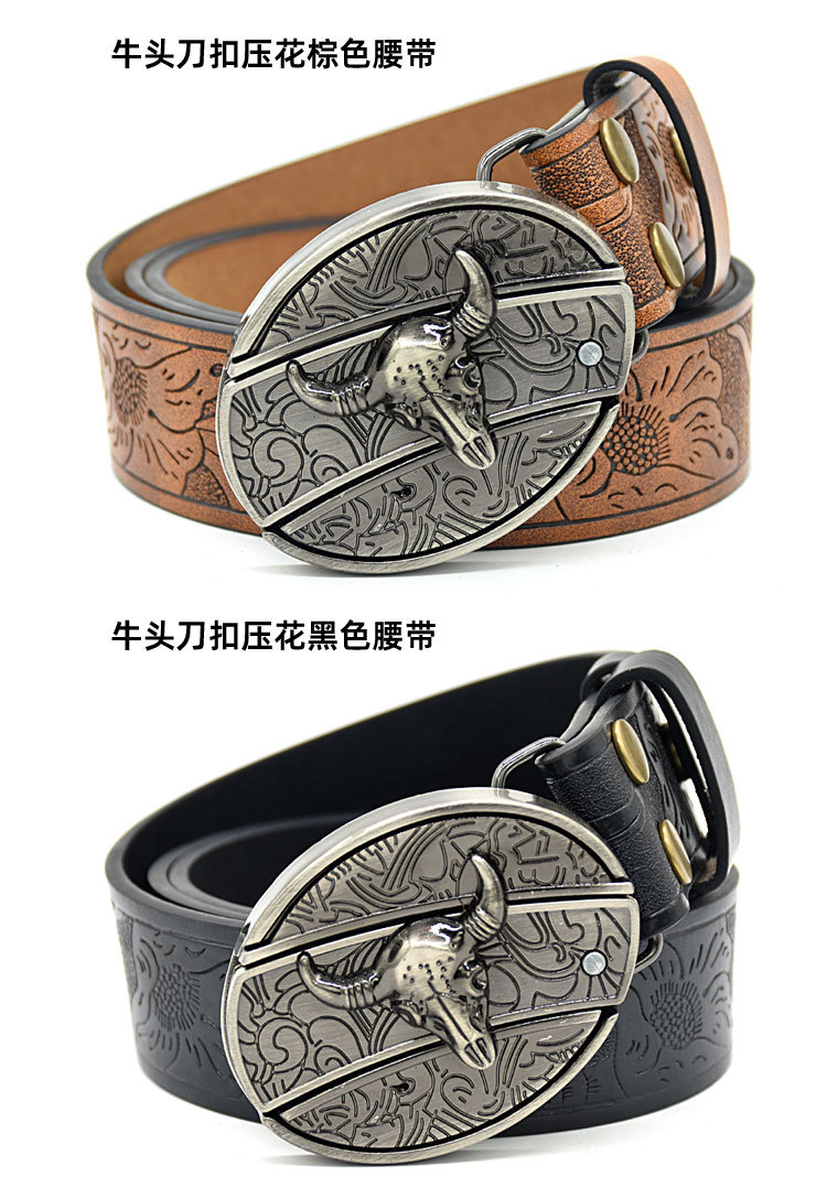 • 황소 머리 칼 버클 양각 브라운