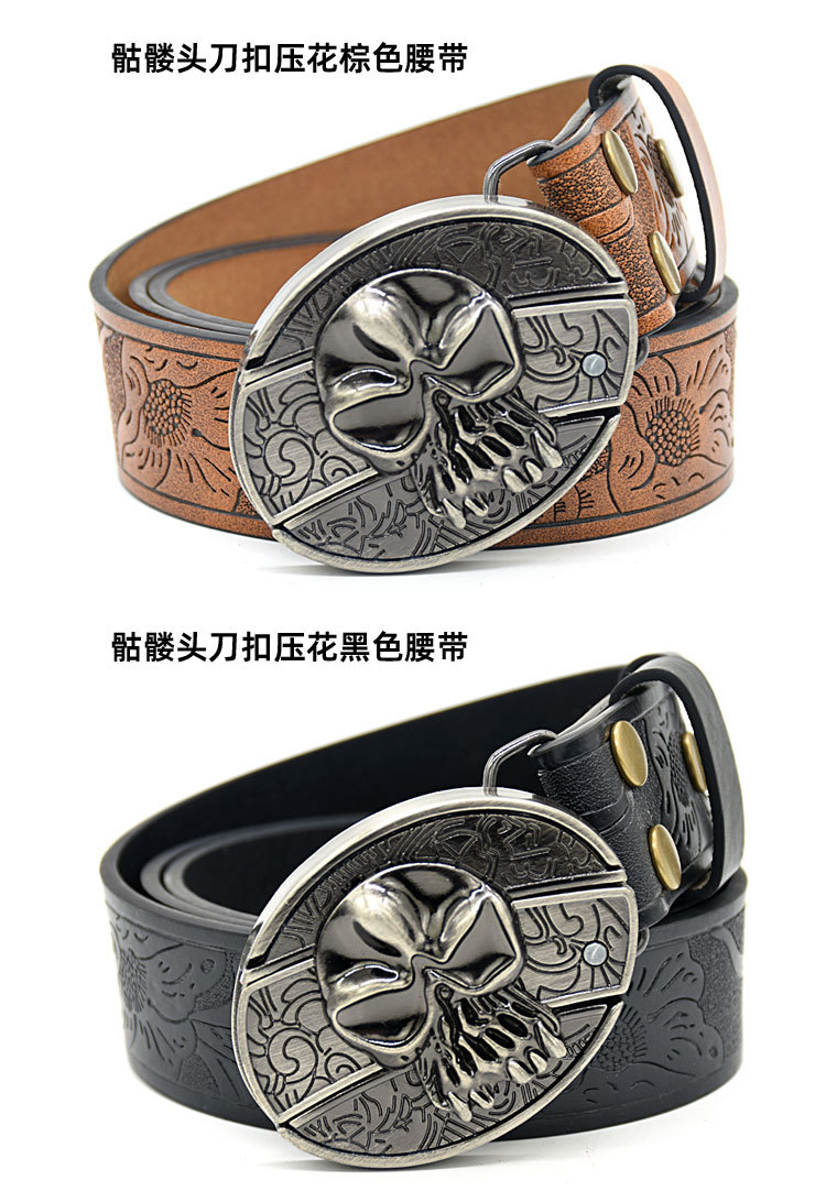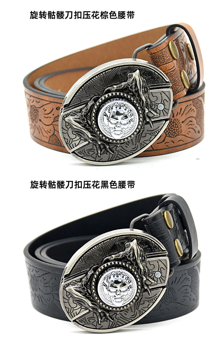 • 회전 해골 칼 버클 양각 브라운