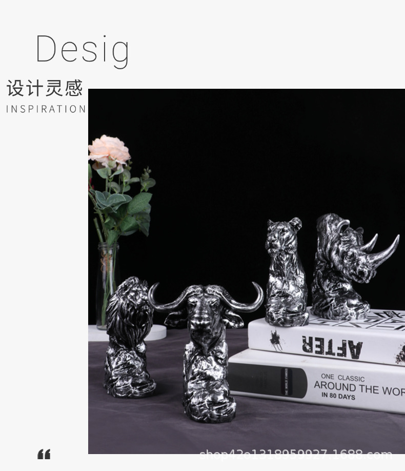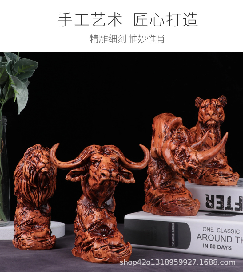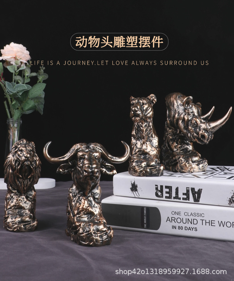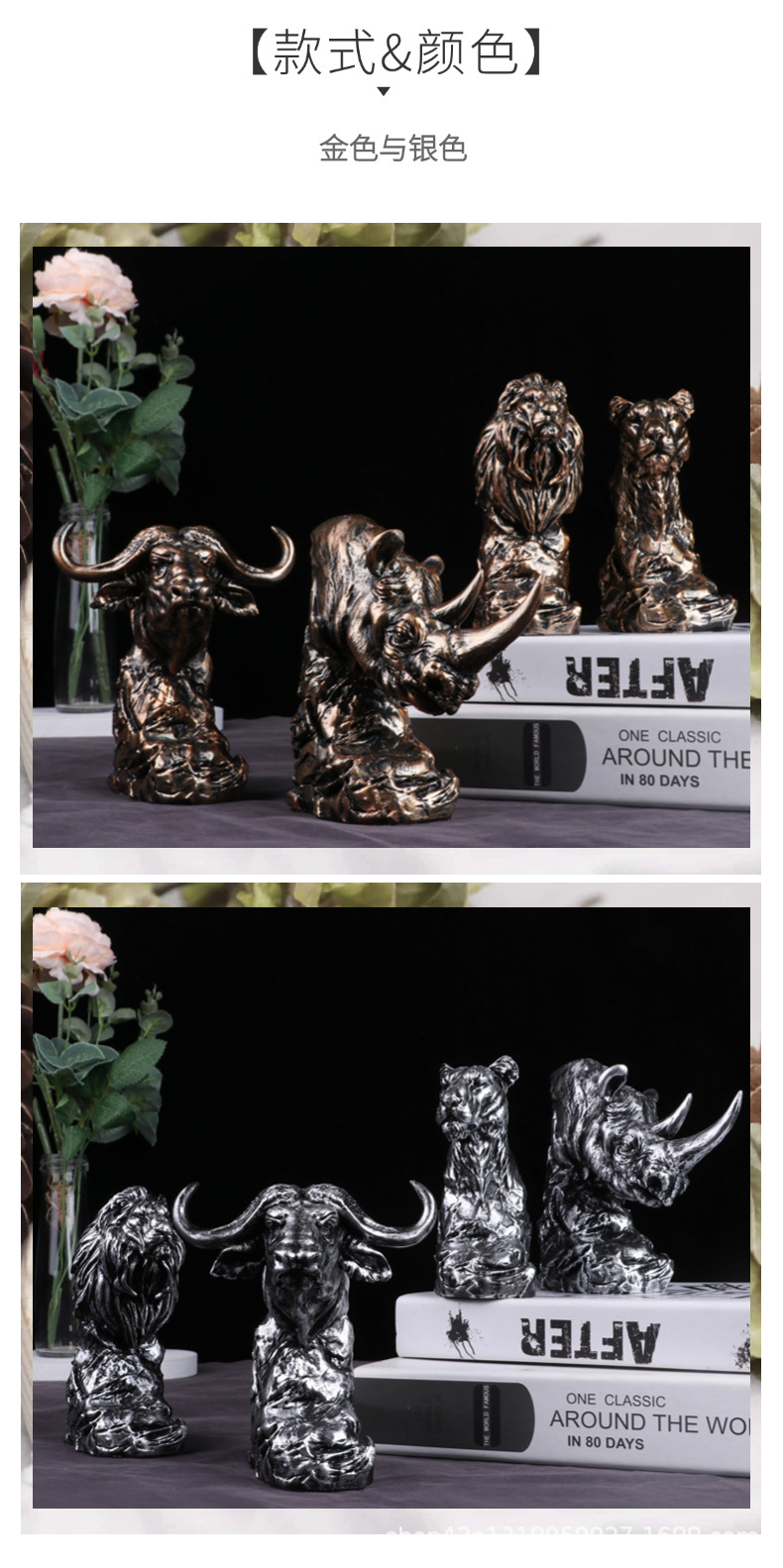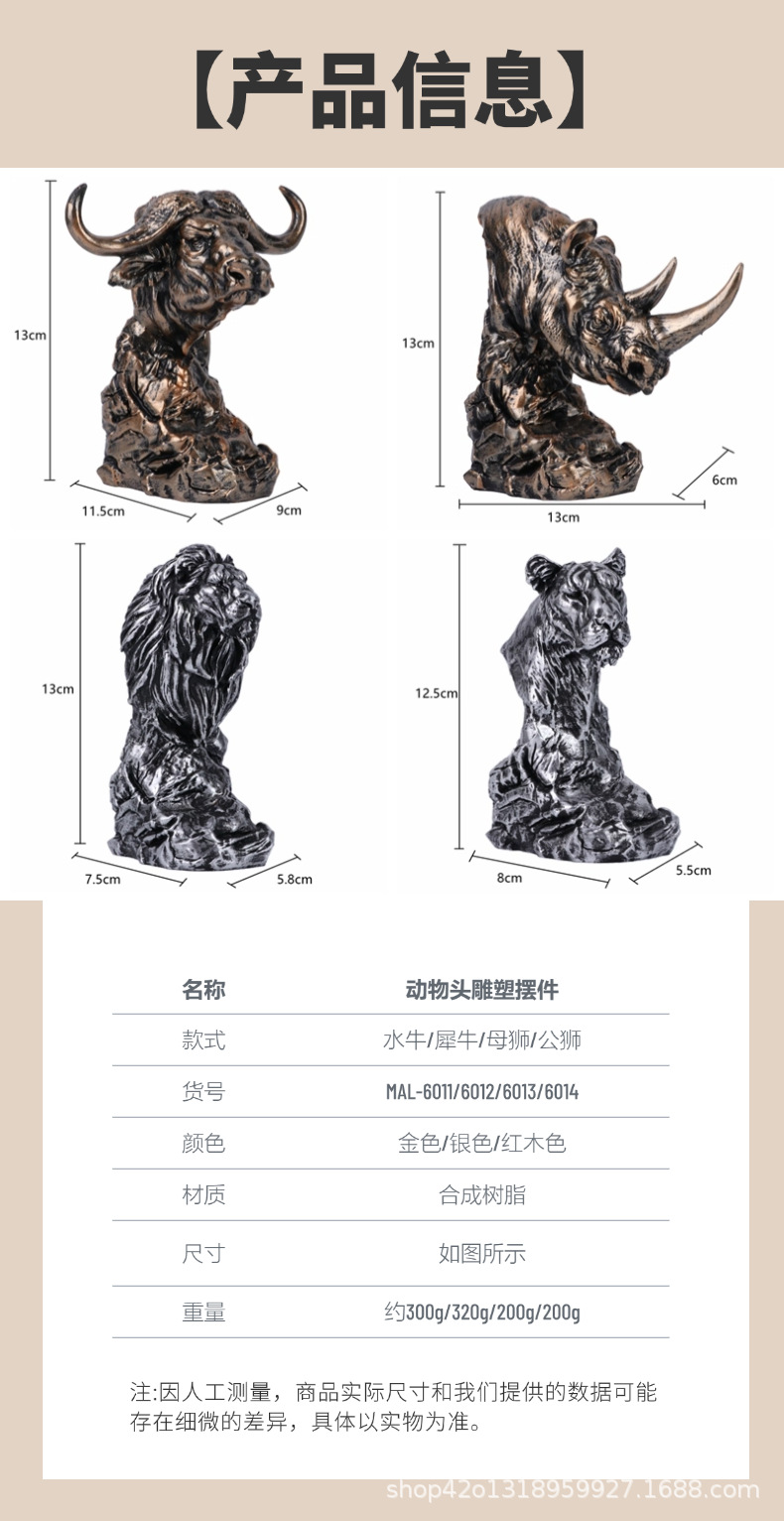 국경 간 뜨거운 판매 동물 머리 동상 장식품 북유럽 사자 코뿔소 머리 수지 공예 선물 홈 장식스토어 가기