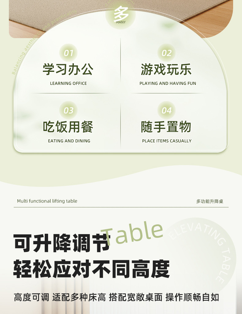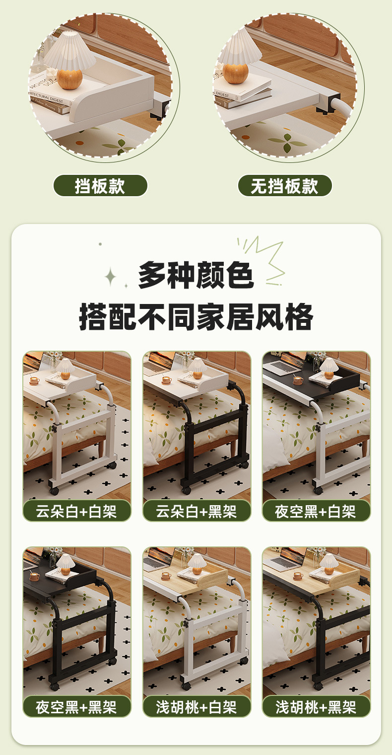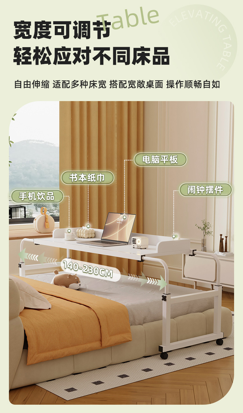 움직일 수있는 크로스 베드 테이블 데스크 홈 스터디 테이블 게으른 침대 컴퓨터 데스크 긴 책상 리프팅 침대 엔드 사이드 테이블