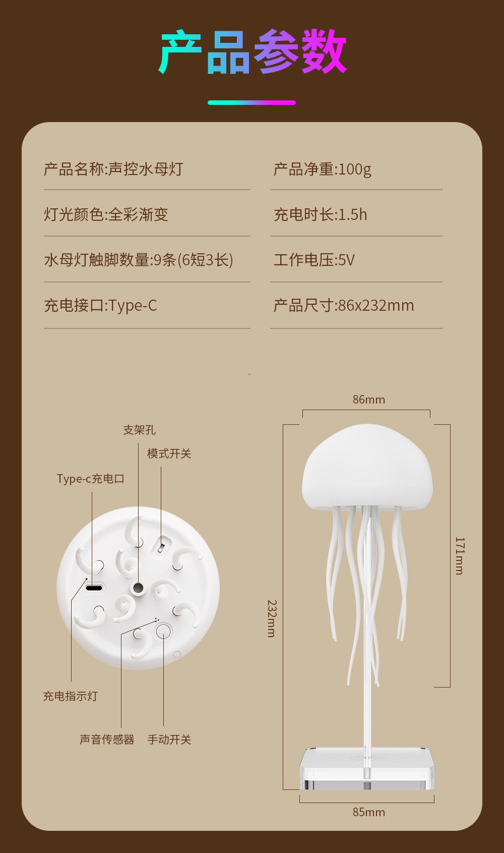 2025 새로운 다채로운 음성 제어 해파리 분위기 램프 침실 분위기 낭만적 인 침대 옆 야간 조명 충전 촉수 회전