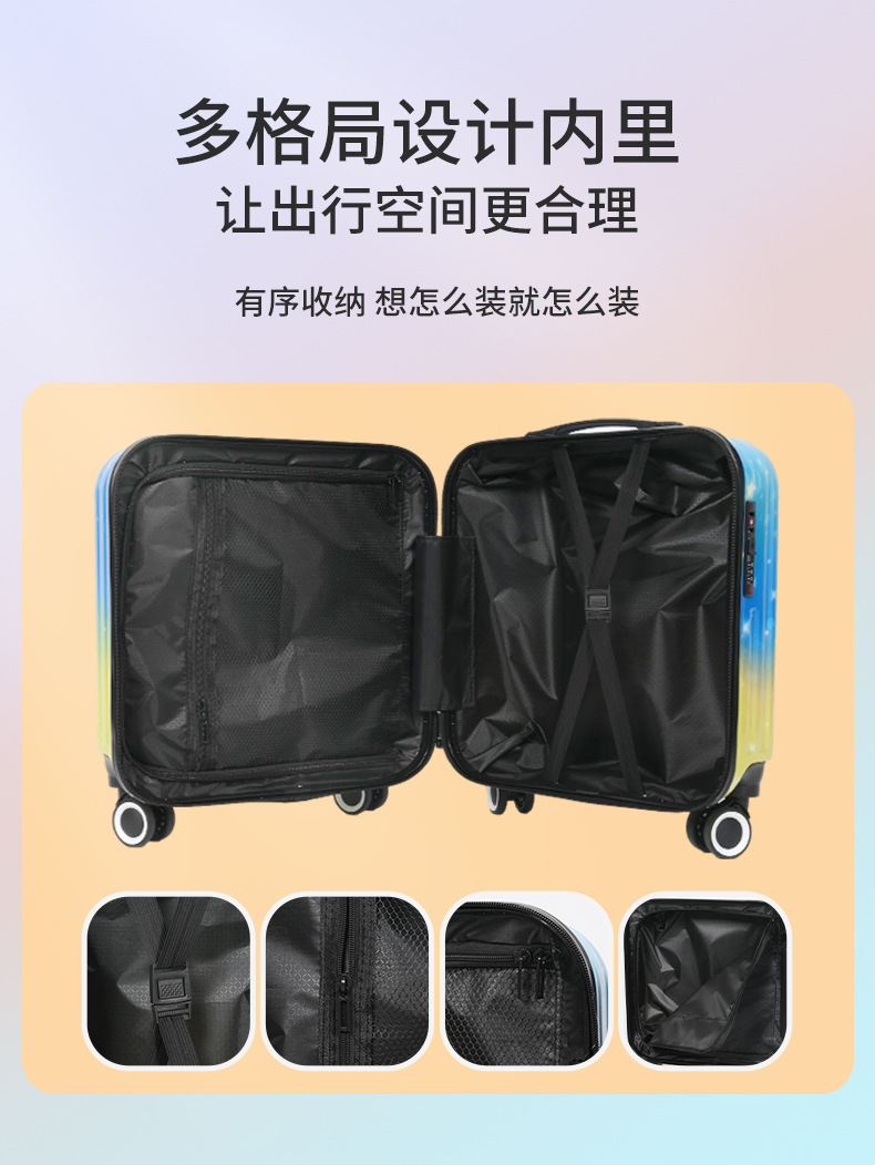 공장 도매 그라디언트 어린이 수하물 인쇄 가능한 로고 가방 대용량 암호 잠금 탑승 상자 선물 상자