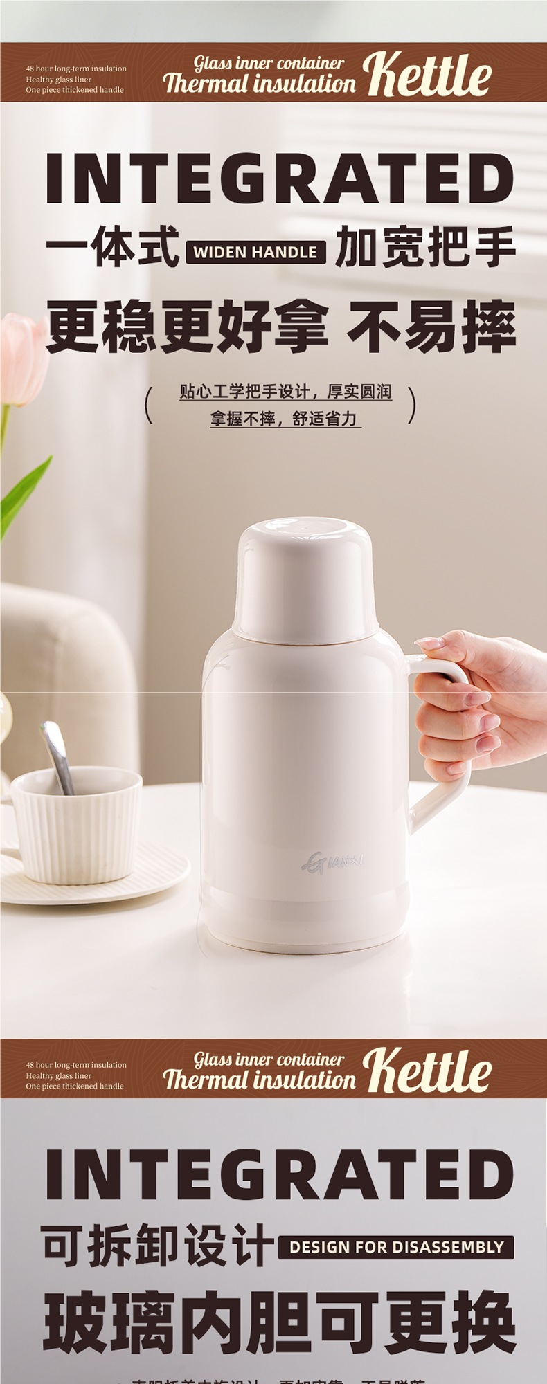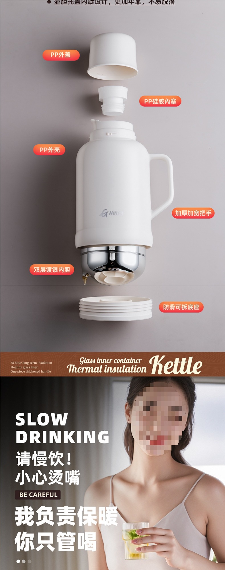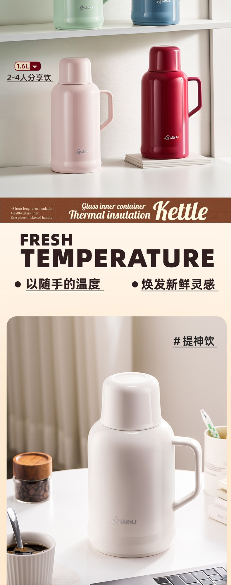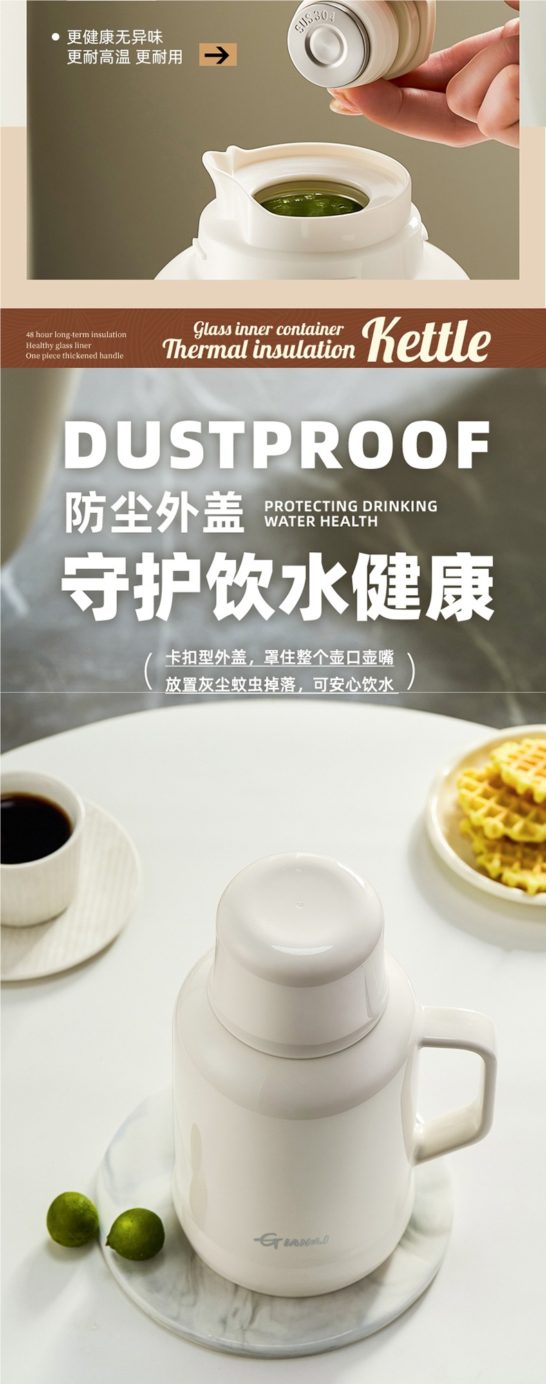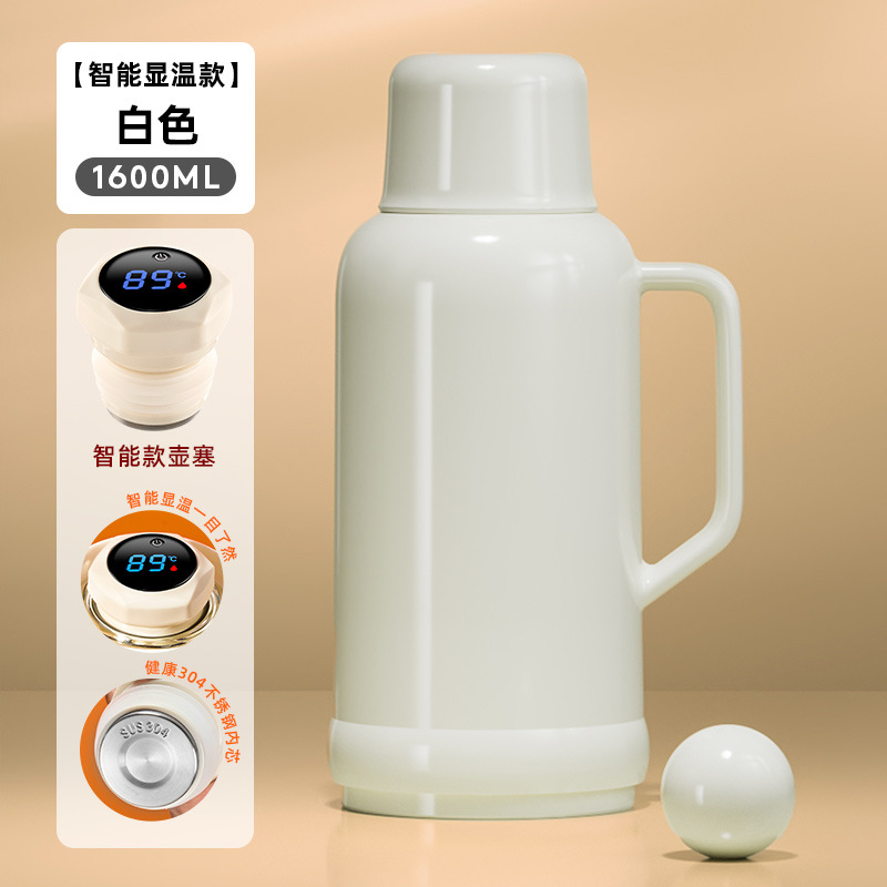 • [지능형 온도 표시 모델] 화이트 1600ML [스테인리스 내부 플러그❤두꺼운 라이너❤두꺼운 껍질]