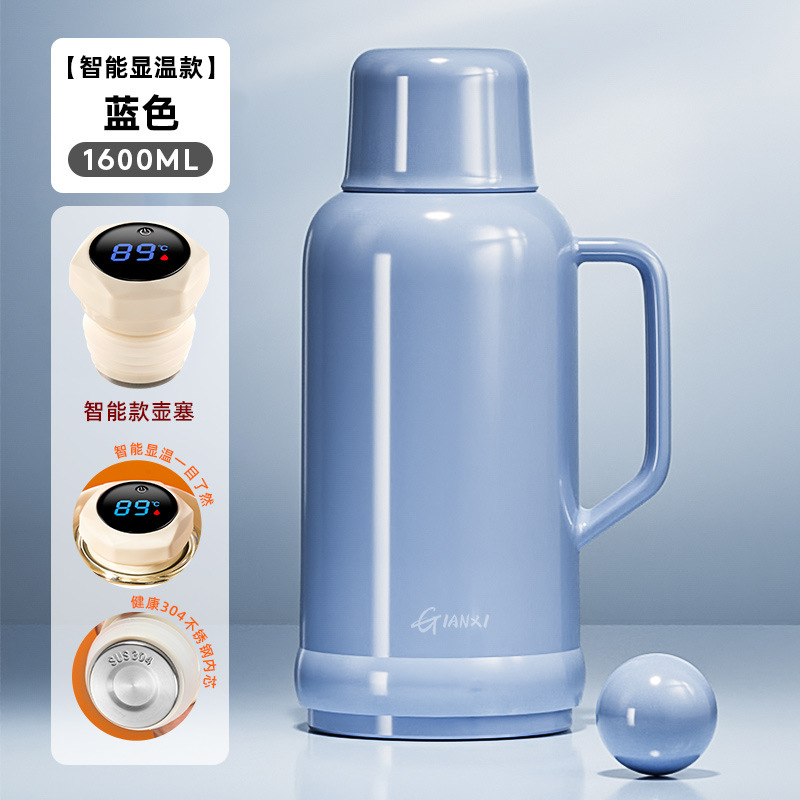 • [지능형 온도 표시 모델] 블루 1600ML [스테인리스 내부 플러그❤두꺼운 라이너❤두꺼운 껍질]