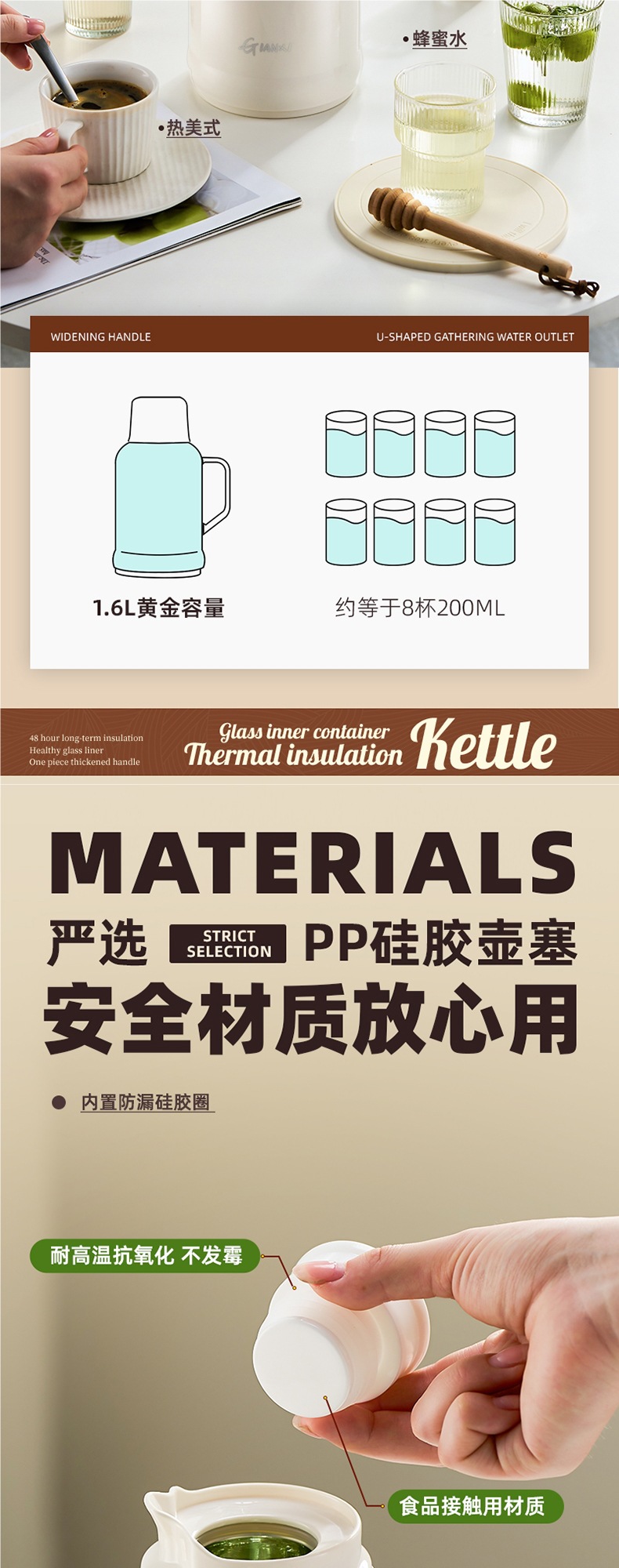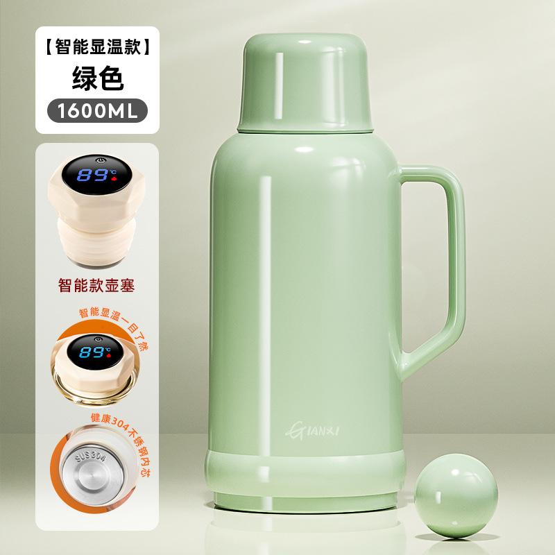 • [지능형 온도 표시 모델] 그린 1600ML [스테인리스 내부 플러그❤두꺼운 라이너❤두꺼운 껍질]