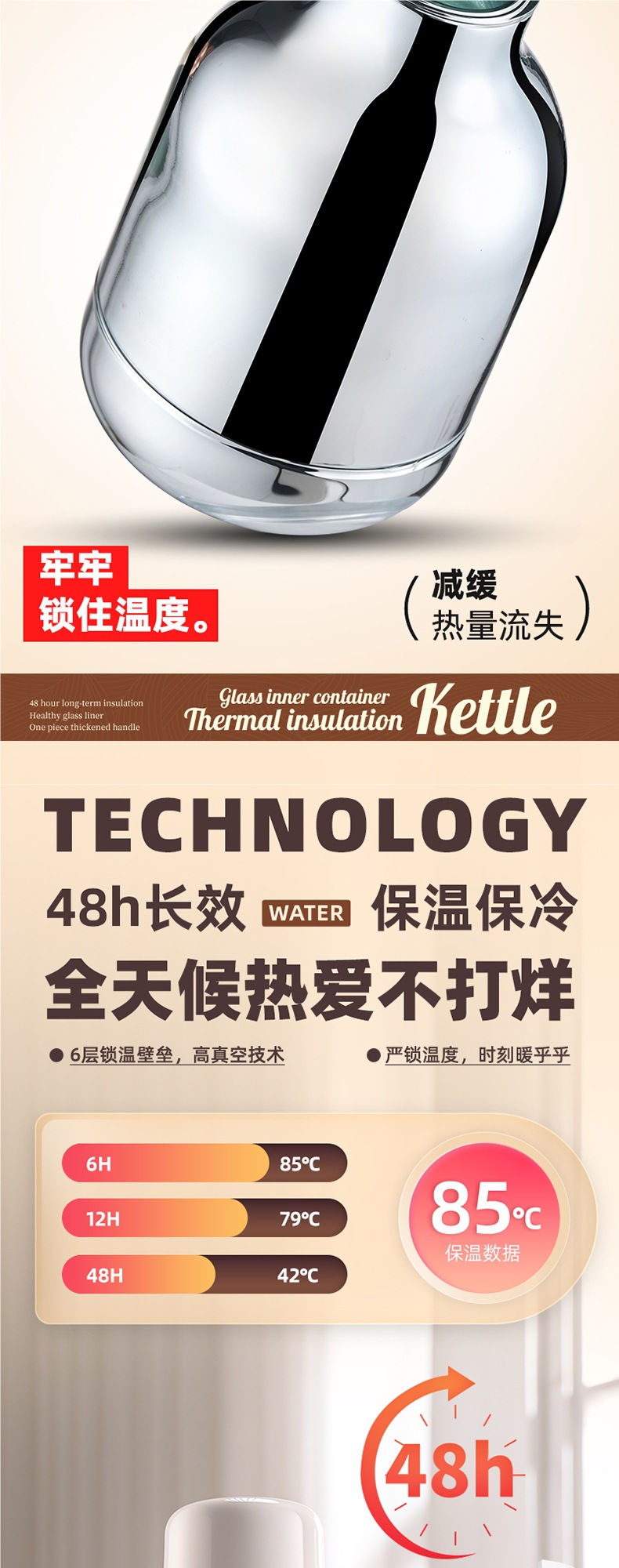 • [지능형 온도 표시 모델] 페스티벌 레드 1000ML [스테인리스 스틸 내부 플러그❤두꺼운 라이너❤두꺼운 껍질]