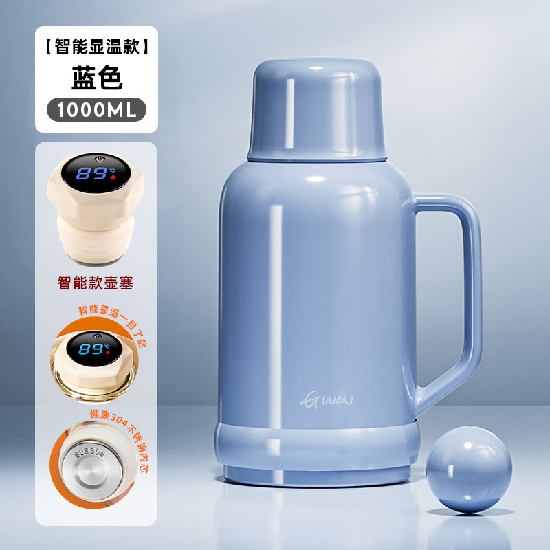 • [지능형 온도 표시 모델] 블루 1000ML [스테인리스 내부 플러그❤두꺼운 라이너❤두꺼운 껍질]