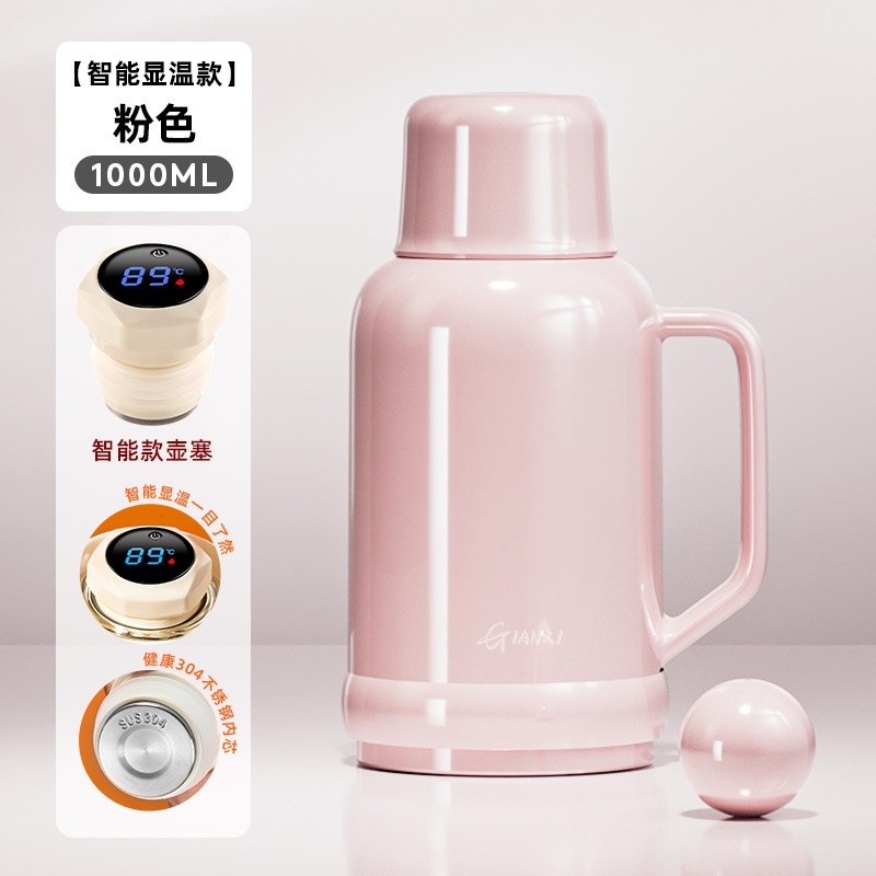 • [지능형 온도 표시 모델] 핑크 1000ML [스테인리스 내부 플러그❤두꺼운 라이너❤두꺼운 껍질]
