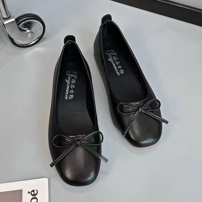 저녁 스타일 플랫 신발 부드러운 활 젖꼭지 신발 얕은 입 펌프 2025 봄 새로운 일본 여성 신발 통근 신발스토어 가기