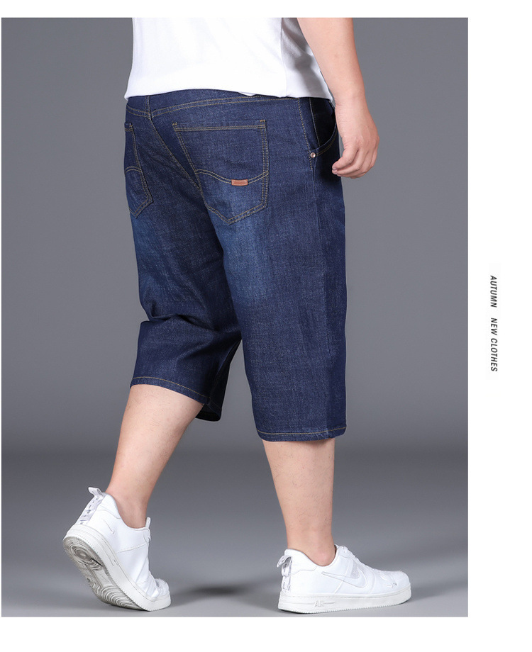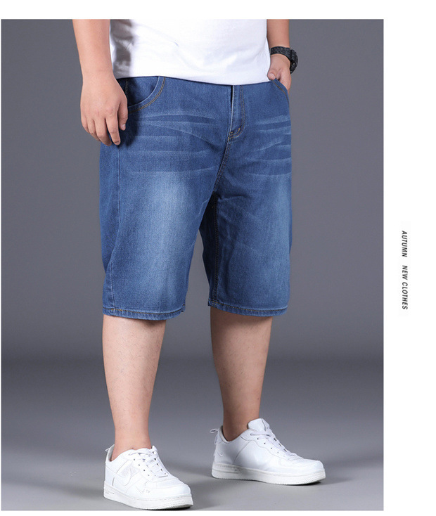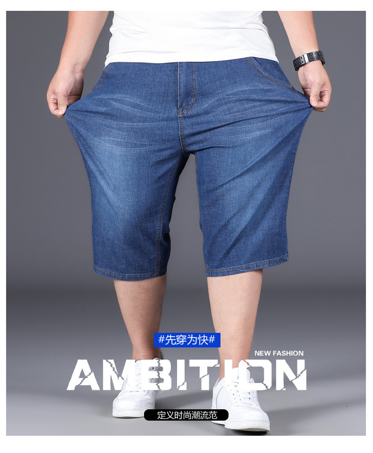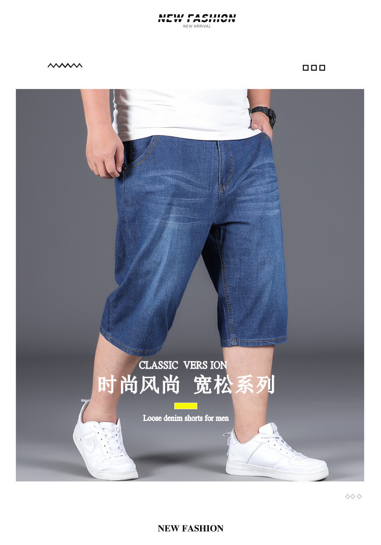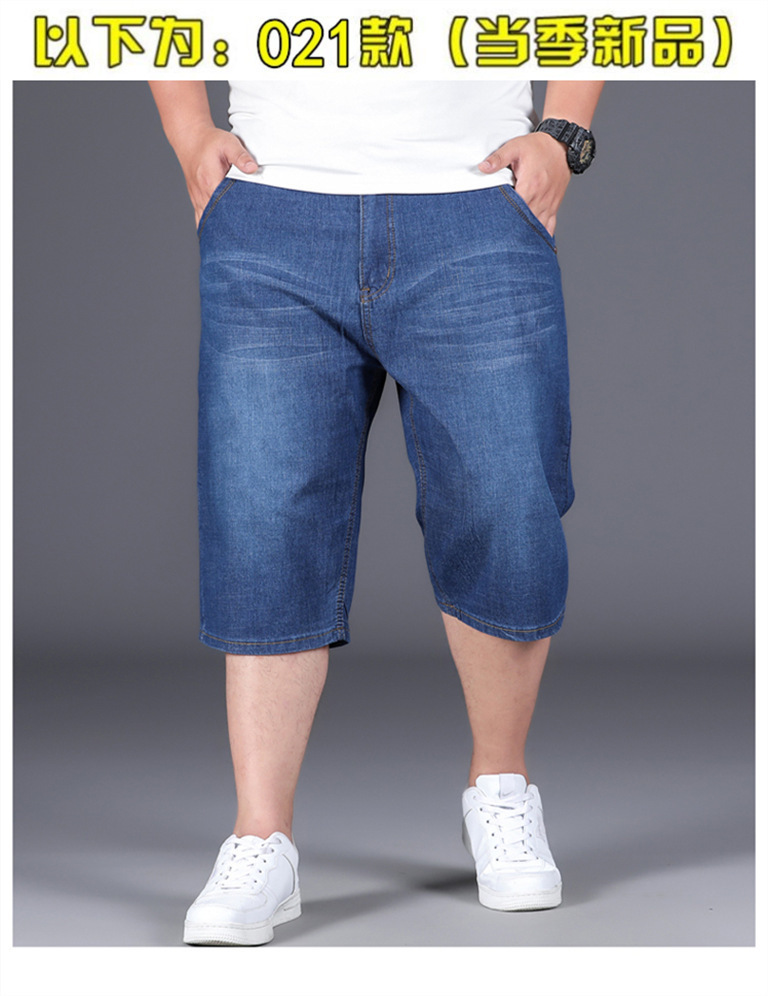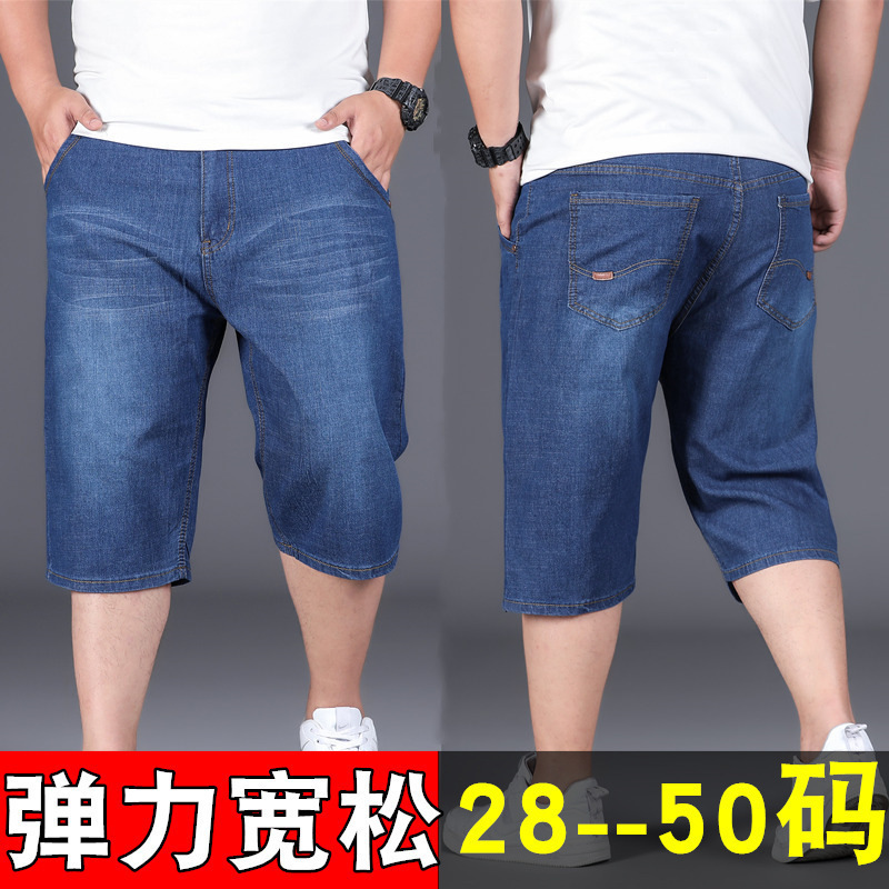 여름 얇은 자른 데님 반바지 남자의 스트레이트 느슨한 뚱뚱한 남자 자른 중간 바지 플러스 뚱뚱한 플러스 사이즈 반바지 단순스토어 가기