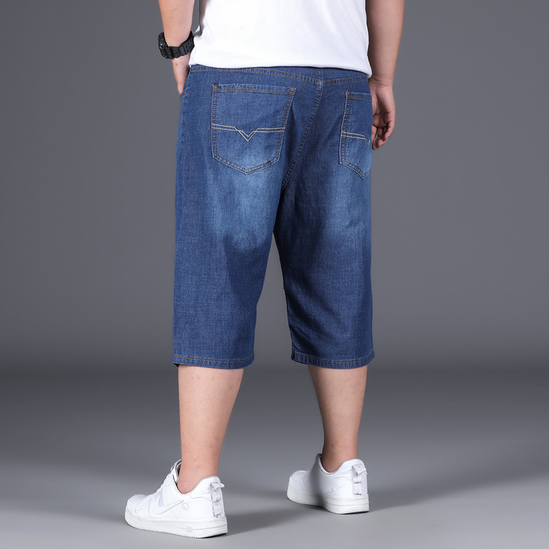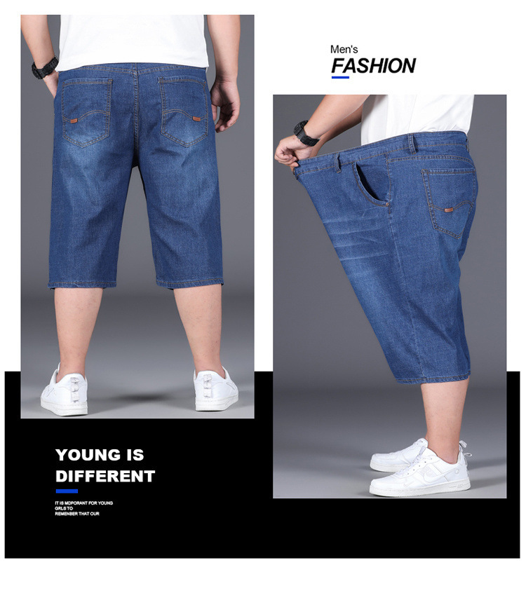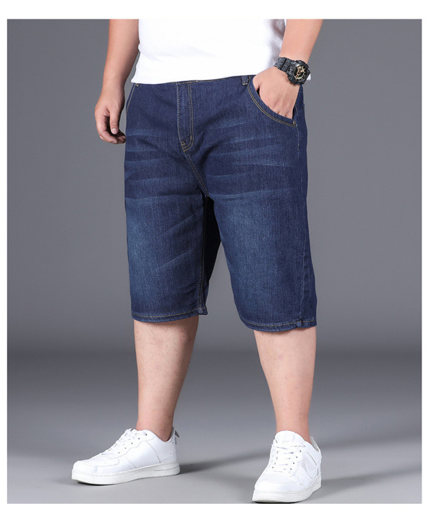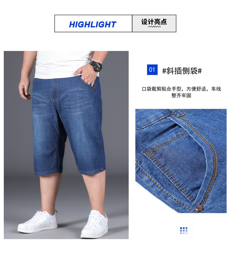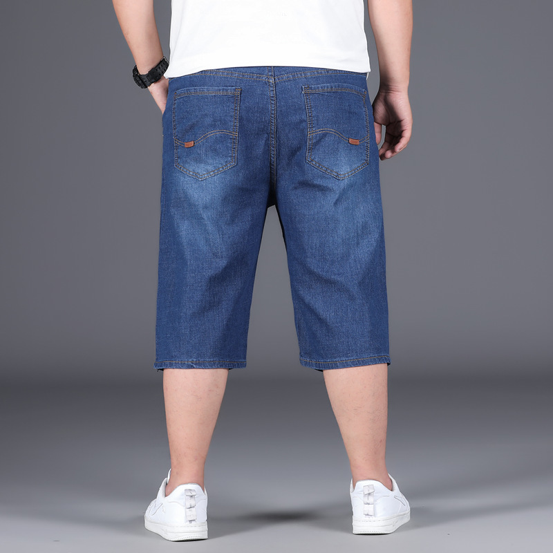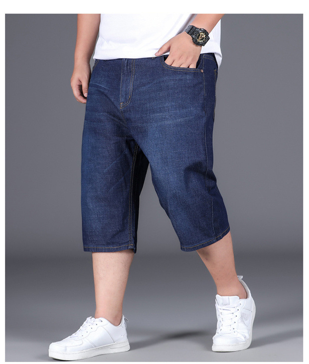 여름 얇은 자른 데님 반바지 남자의 스트레이트 느슨한 뚱뚱한 남자 자른 중간 바지 플러스 뚱뚱한 플러스 사이즈 반바지 단순스토어 가기