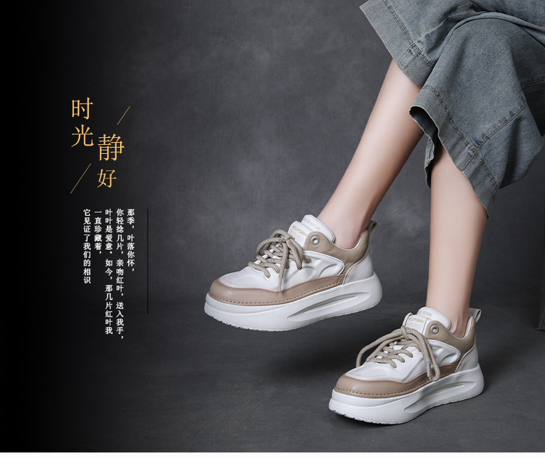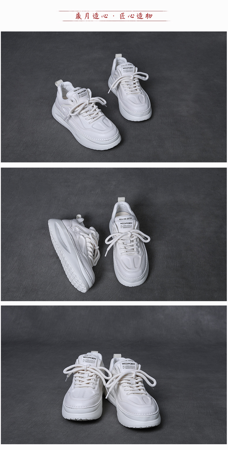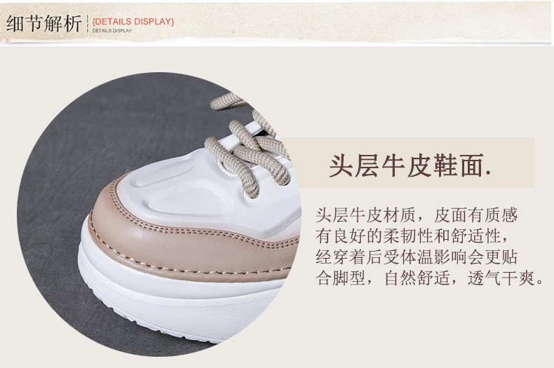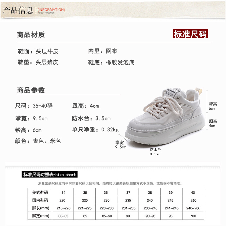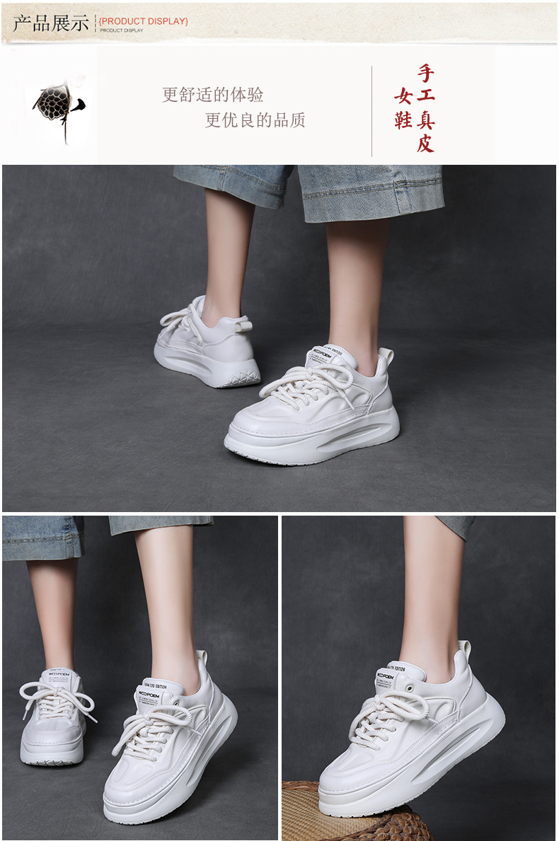 Jishu 25 Spring Top Layer Cowhide 두꺼운 밑창 신발 가죽 레이스 업 통기성 작은 여성 신발 캐주얼 경량 흰색 신발스토어 가기