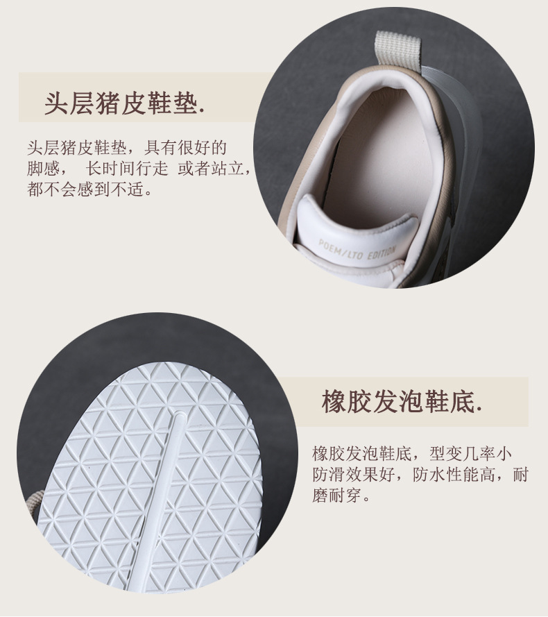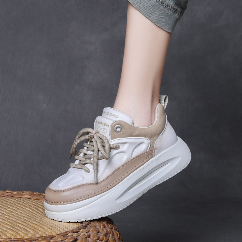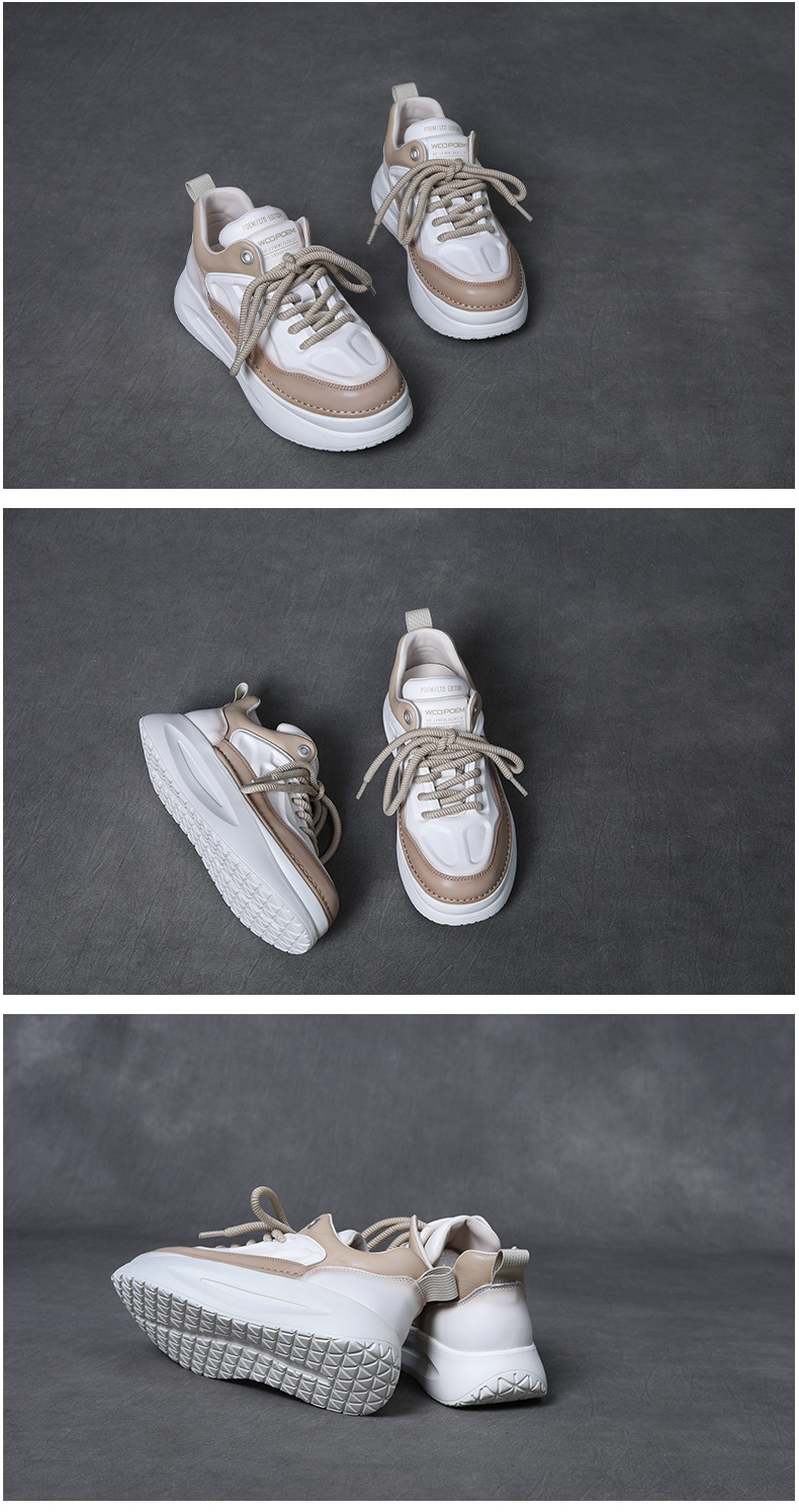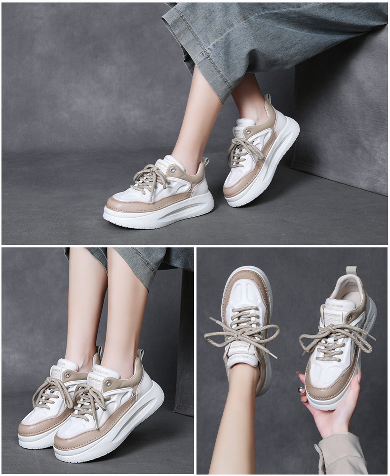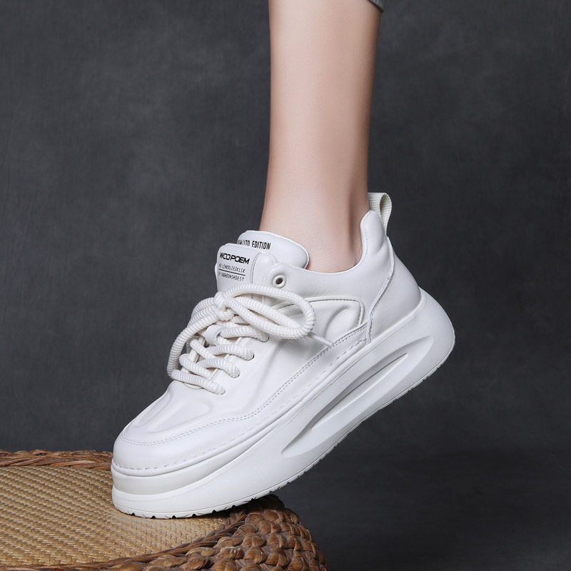 Jishu 25 Spring Top Layer Cowhide 두꺼운 밑창 신발 가죽 레이스 업 통기성 작은 여성 신발 캐주얼 경량 흰색 신발