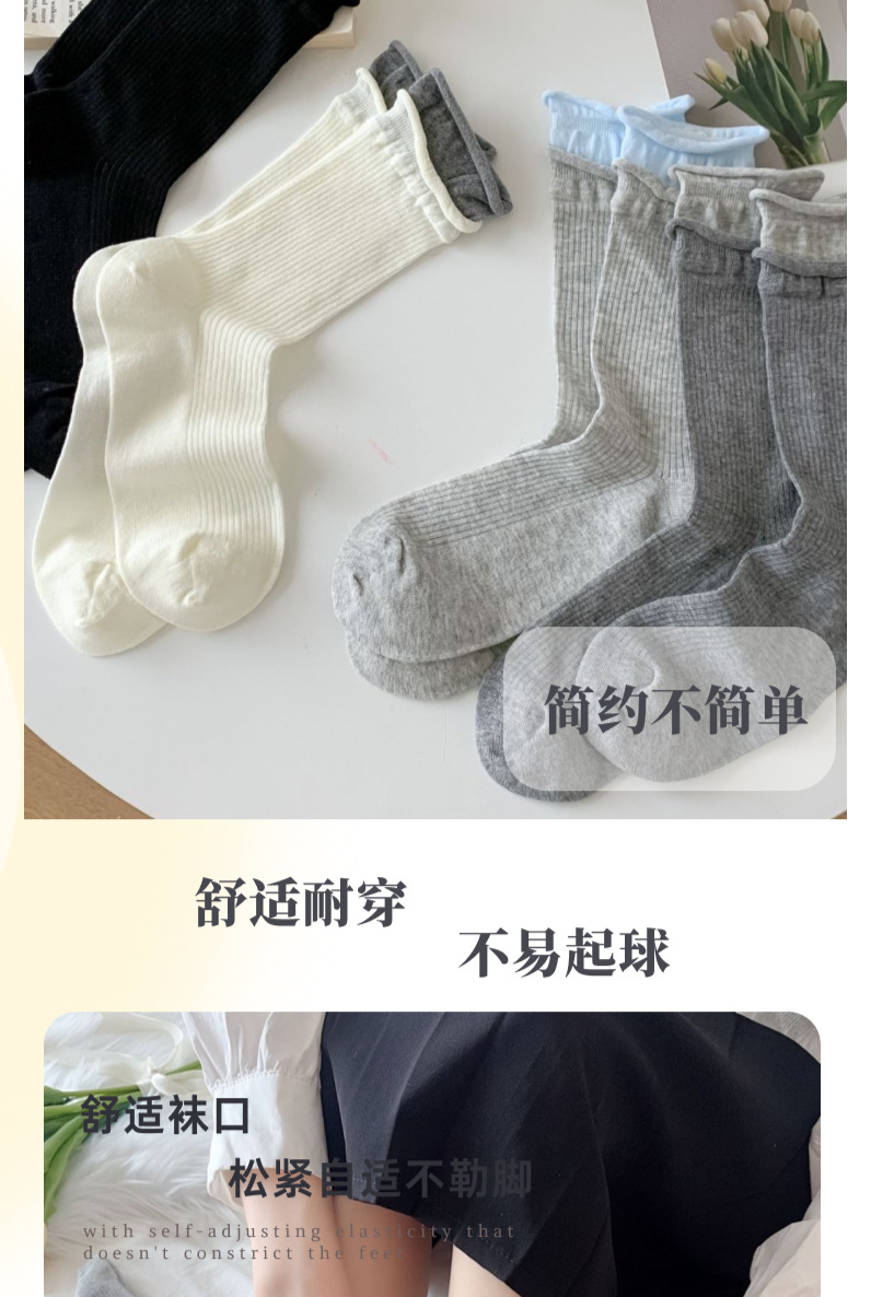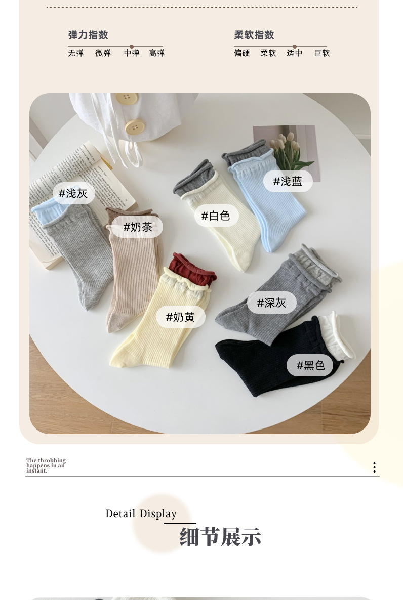 Mekki 봄 여름 새로운 한국 패션 스타일 컬링 대비 색상 더블 프릴 입 다목적 얇은 빗질면 파일 양말