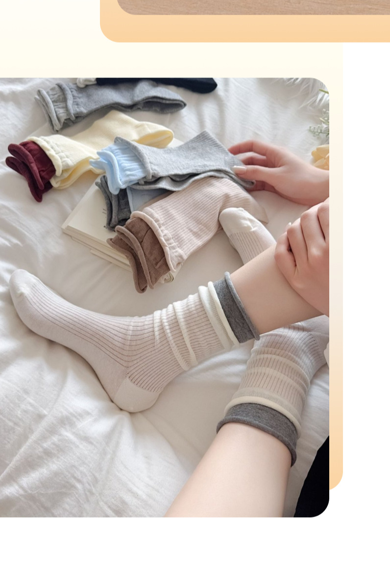 Mekki 봄 여름 새로운 한국 패션 스타일 컬링 대비 색상 더블 프릴 입 다목적 얇은 빗질면 파일 양말스토어 가기