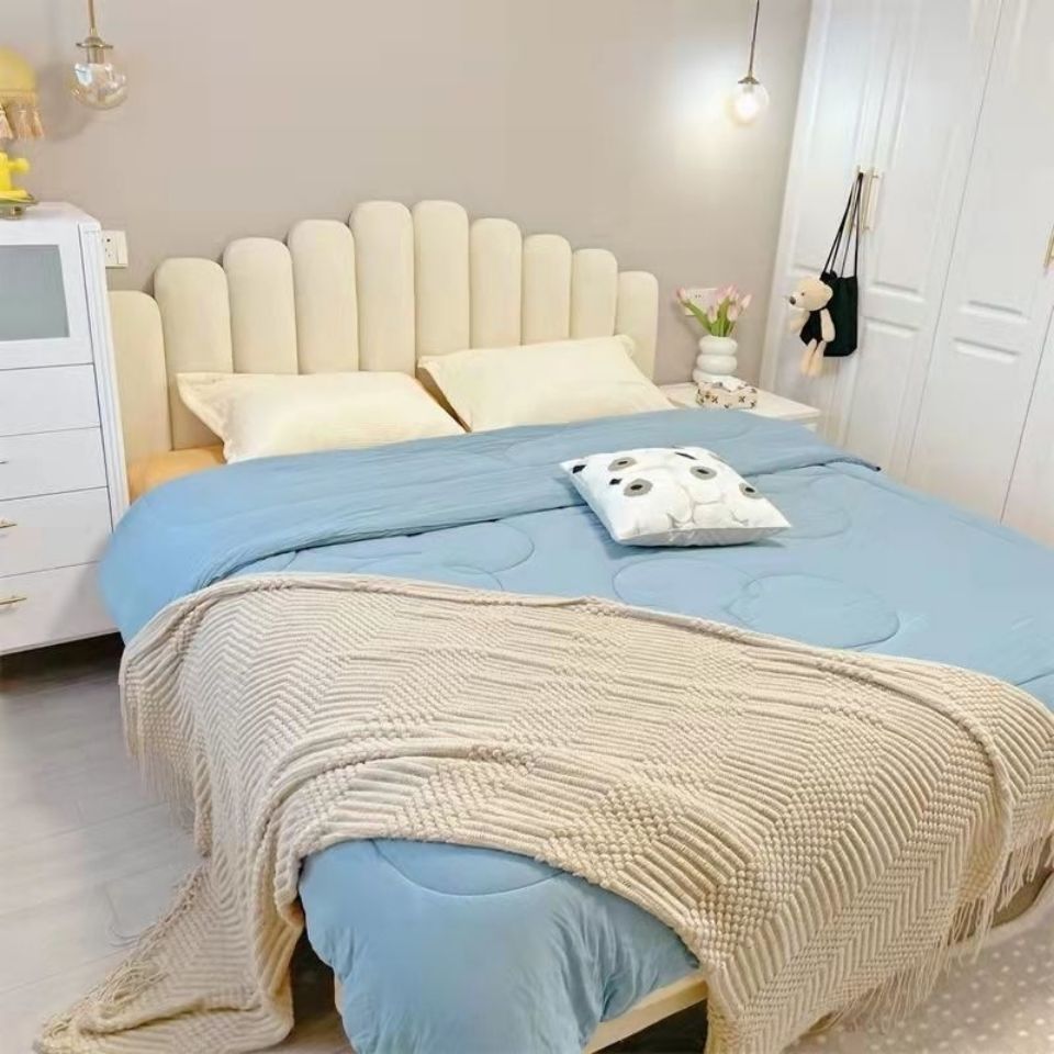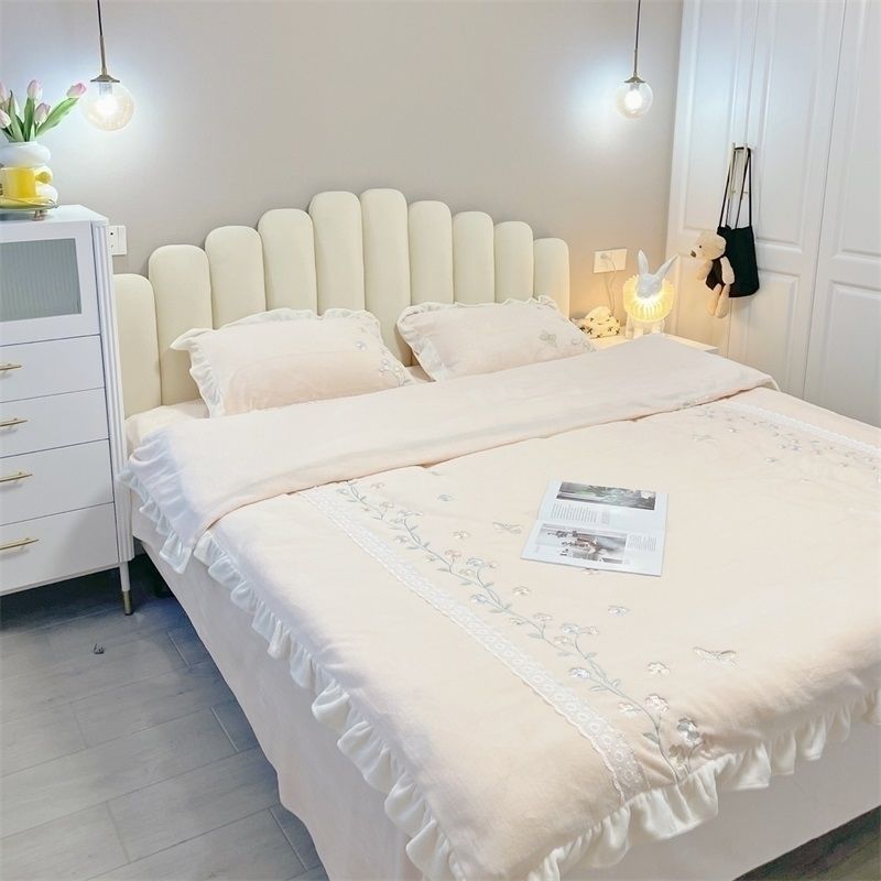 북유럽 엔트리-고급 밀크 화이트 패브릭 소프트 베드 인터넷-유명한 더블 마스터 침실 웨딩 침대 현대 간단한 엔트리-럭셔리 벨벳 어린이 침대