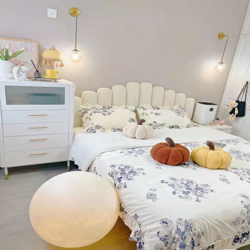 북유럽 엔트리-고급 밀크 화이트 패브릭 소프트 베드 인터넷-유명한 더블 마스터 침실 웨딩 침대 현대 간단한 엔트리-럭셔리 벨벳 어린이 침대스토어 가기