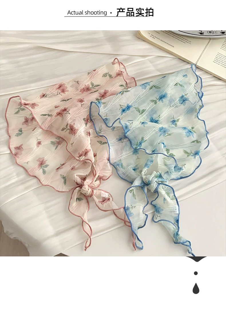 실크 스카프 고급 느낌 Tulle Triangle Scarf Mori 스타일 잉크 염료 스타일 목 보호 스카프 헤어 벨트 스카프스토어 가기