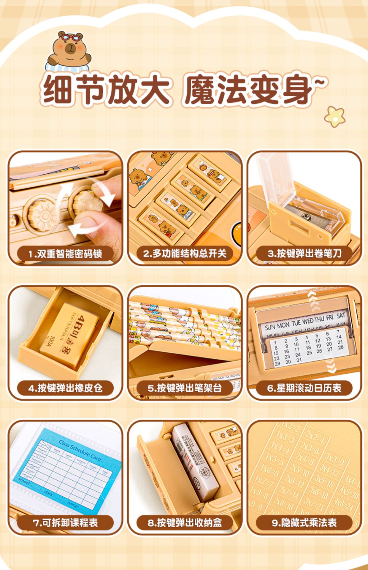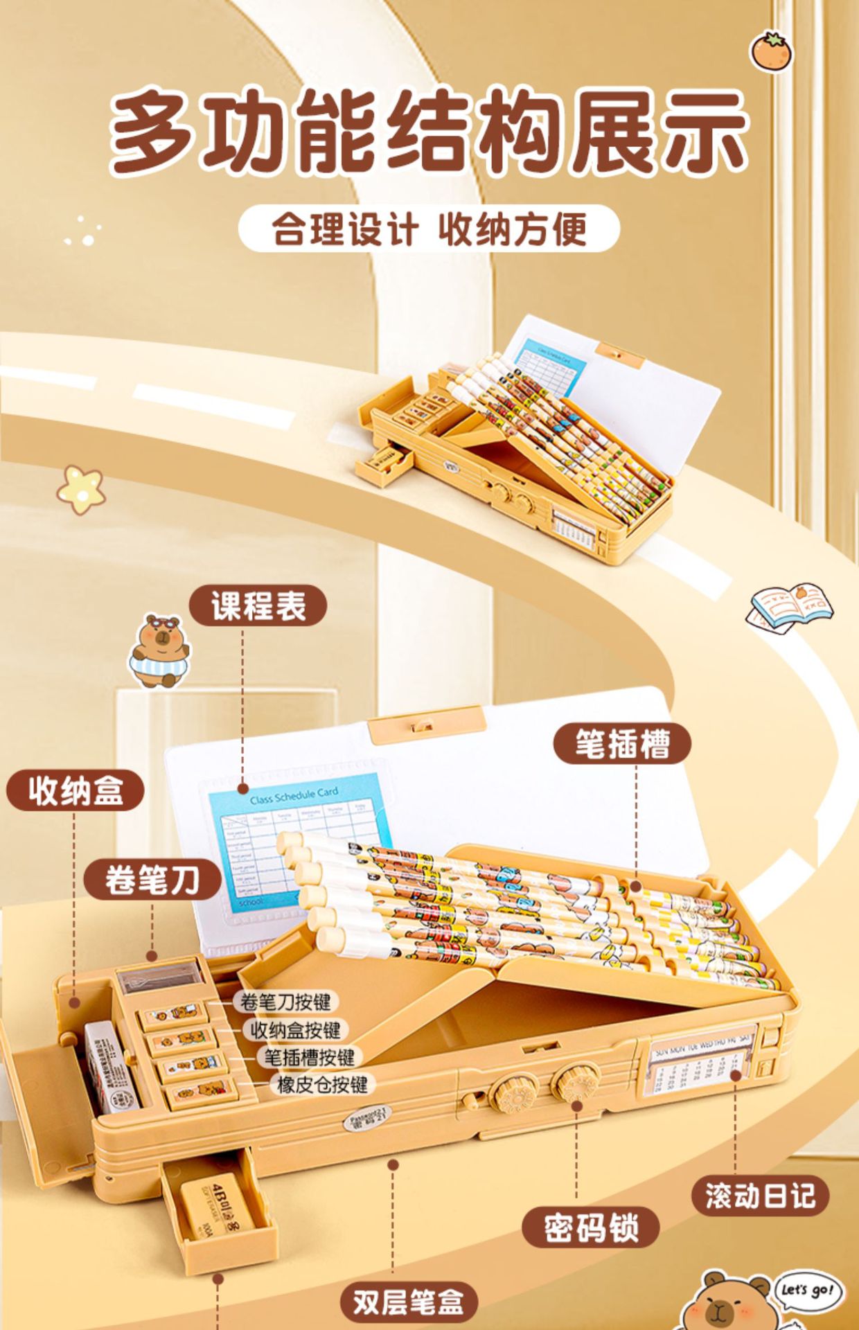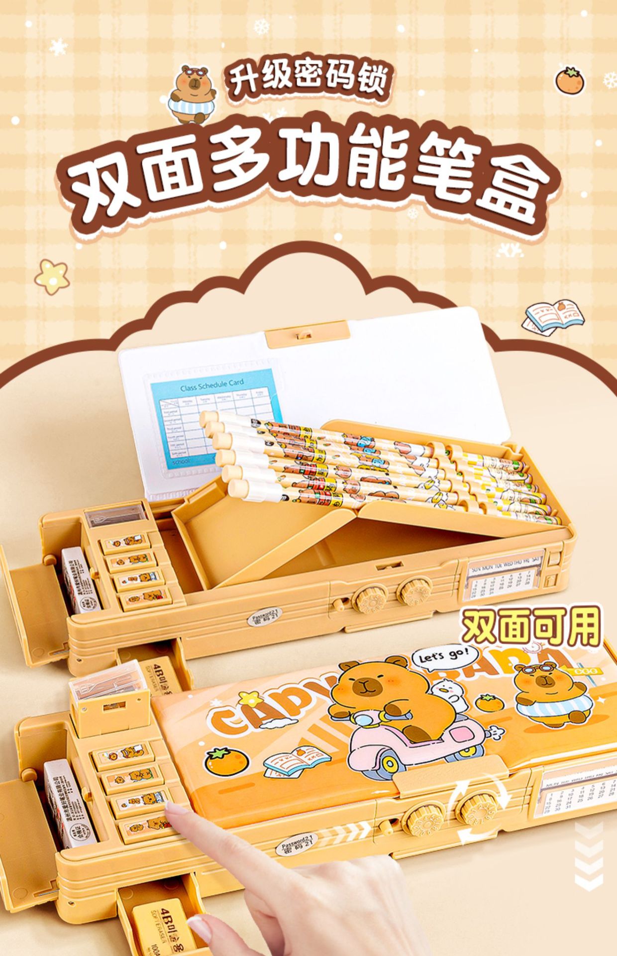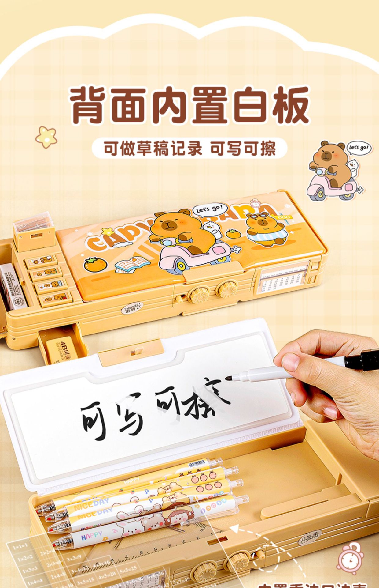 카피발라 다기능 문구함 남녀공용 2026 신형 만화 필통 화이트보드 초등학생 어린이용