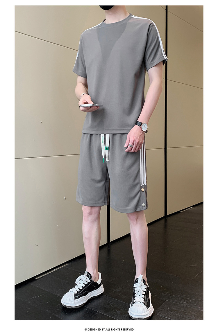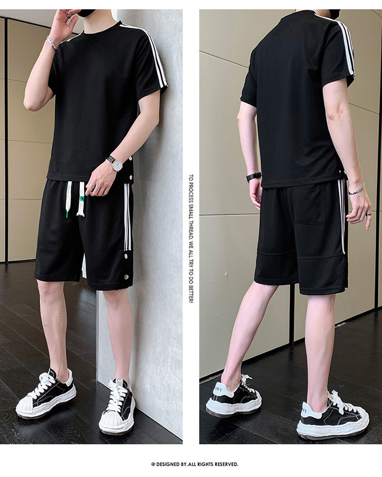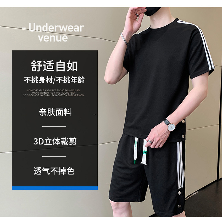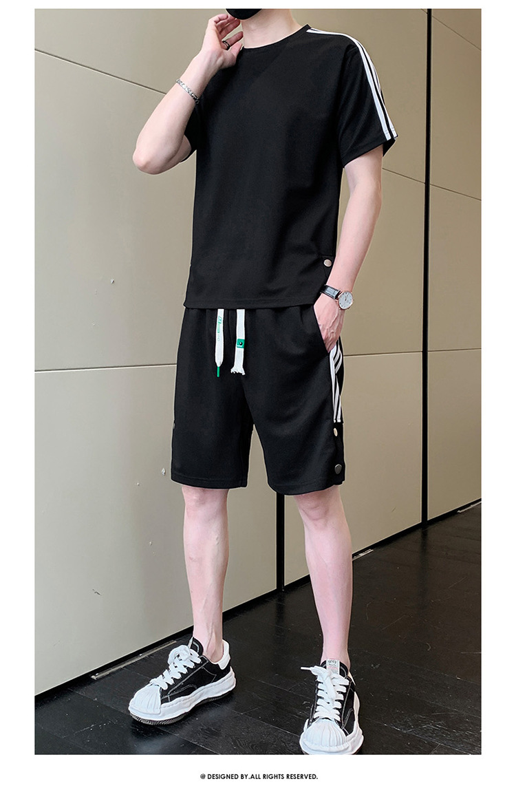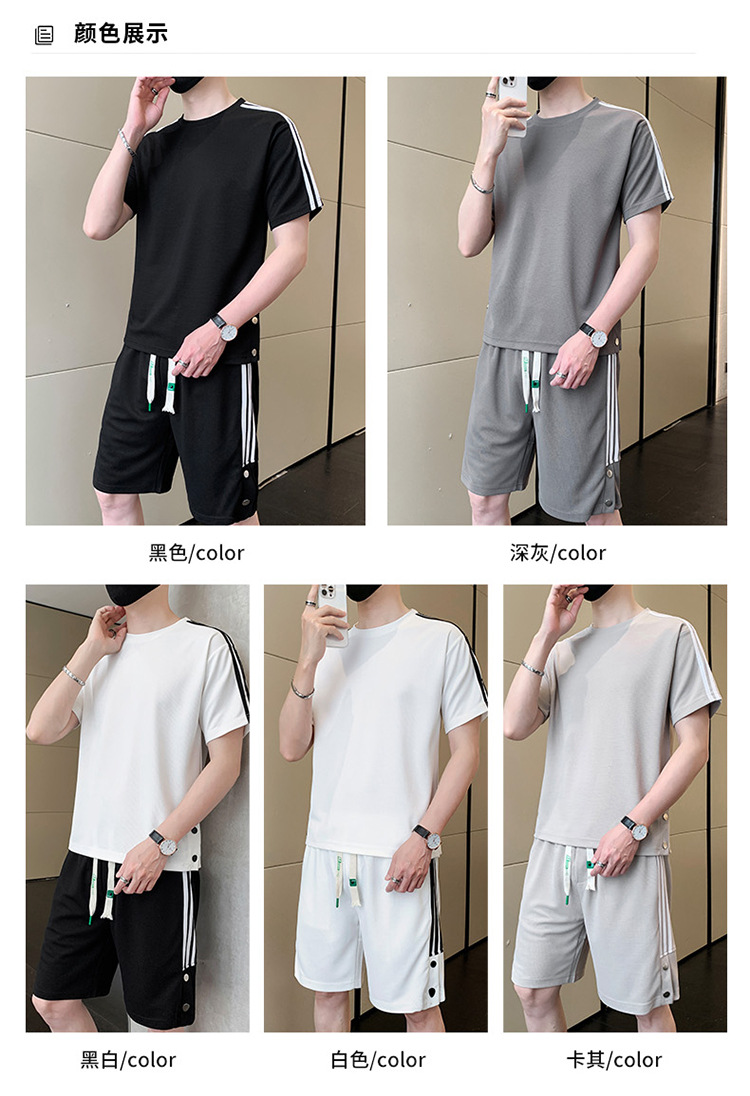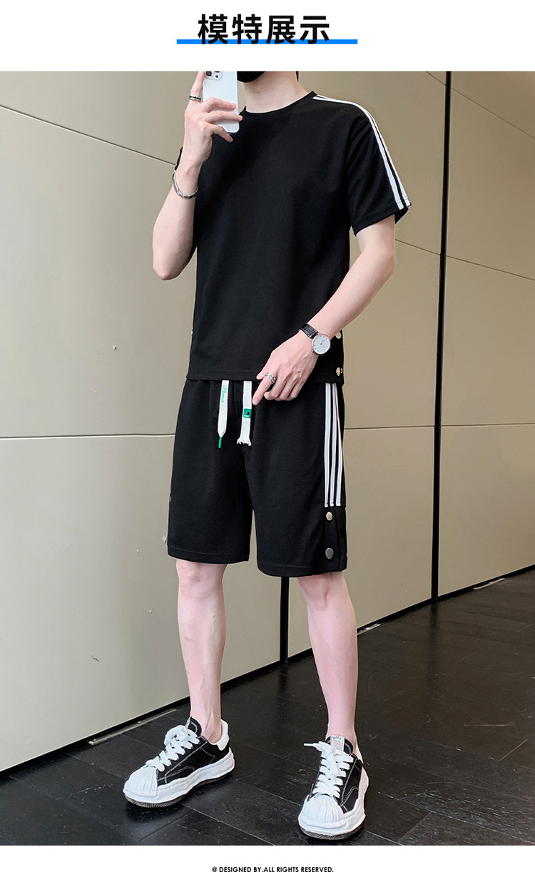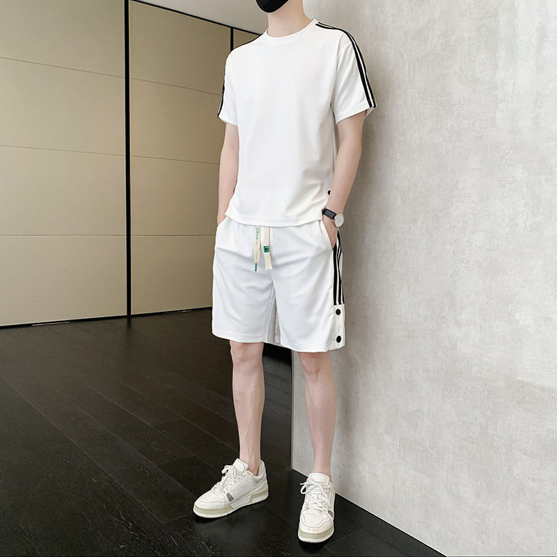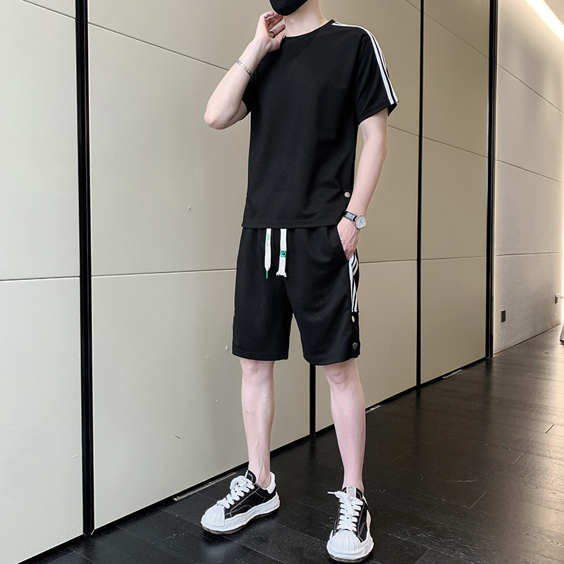 여름 새로운 스포츠웨어 반팔 티셔츠 스포츠 플러스 사이즈 세트 트렌디 한 남자 더피 핸섬 세트 느슨한 반바지 M-8