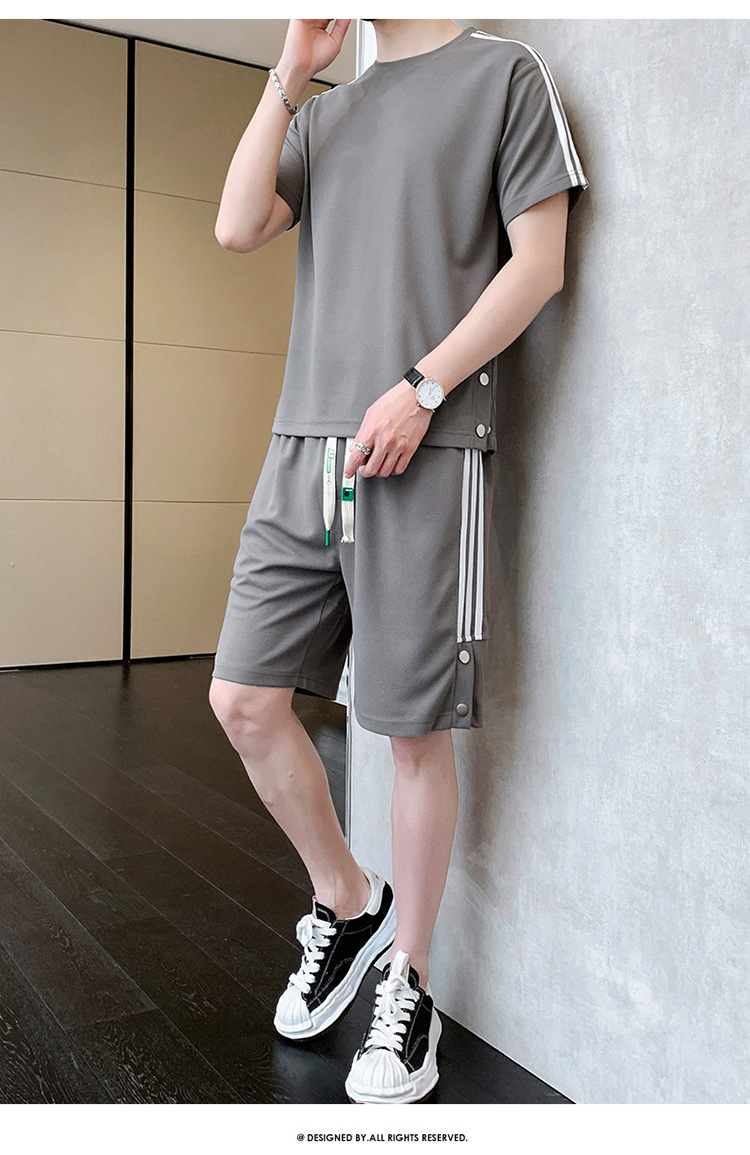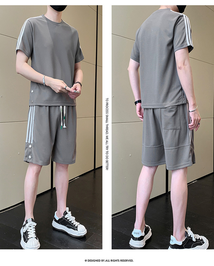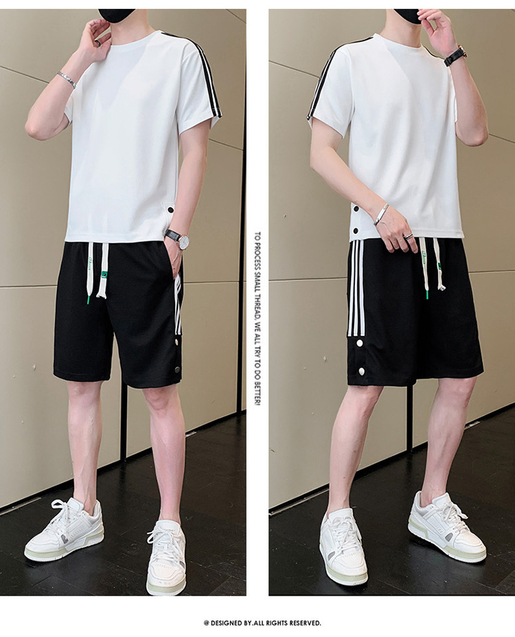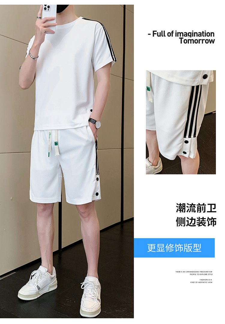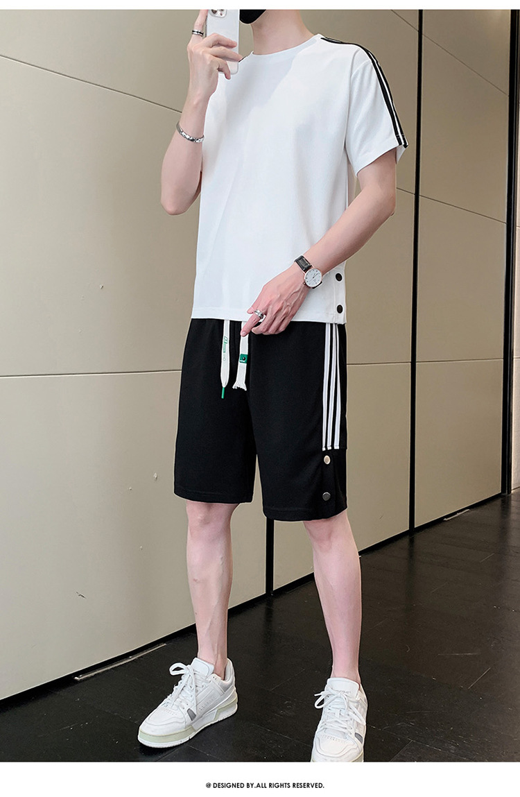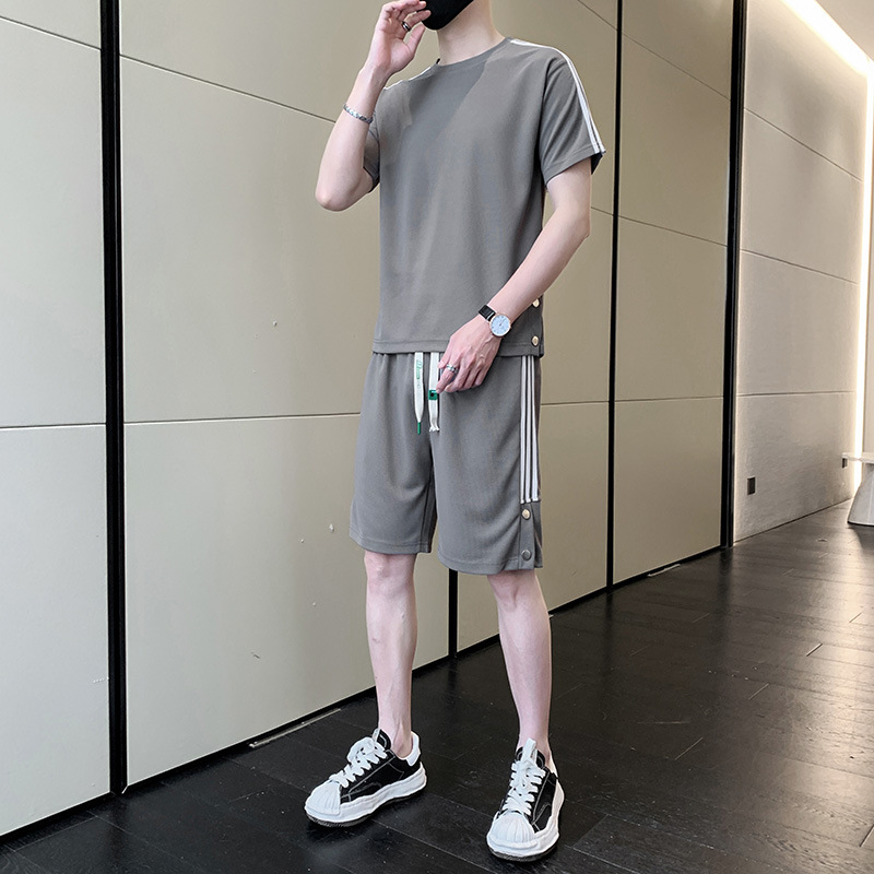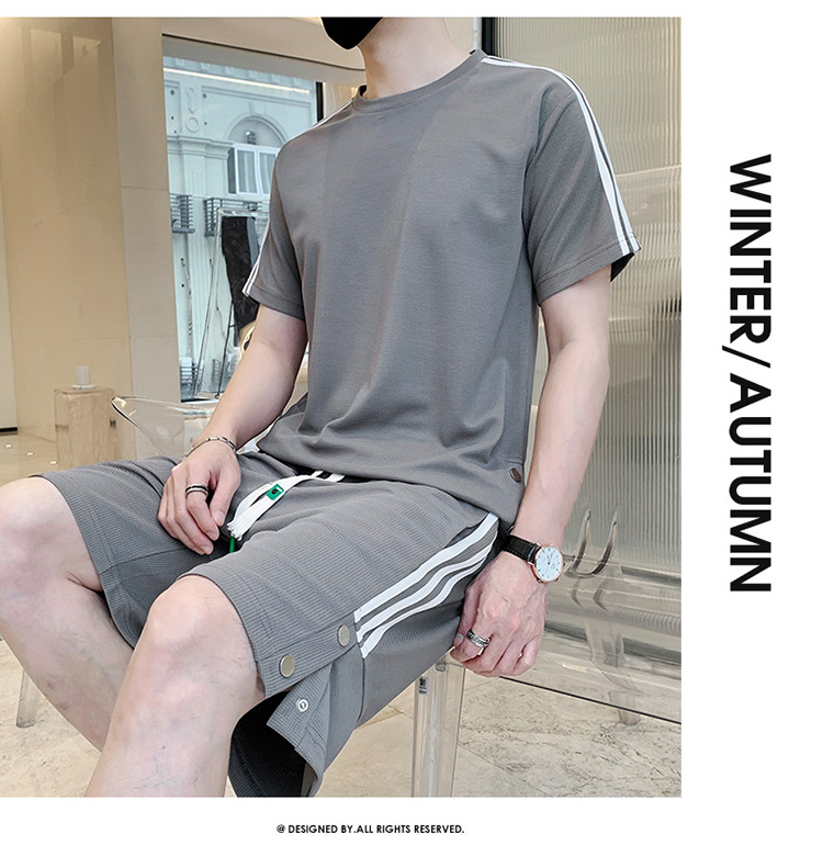 여름 새로운 스포츠웨어 반팔 티셔츠 스포츠 플러스 사이즈 세트 트렌디 한 남자 더피 핸섬 세트 느슨한 반바지 M-8