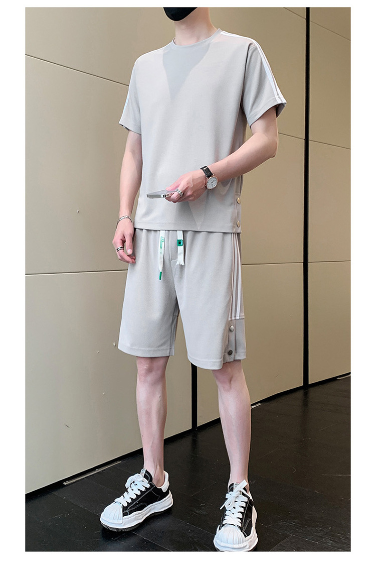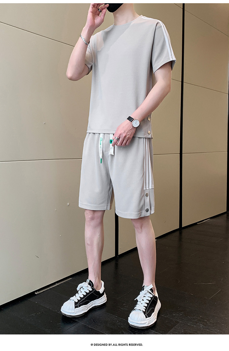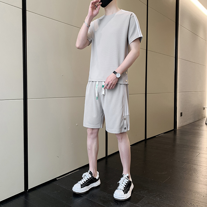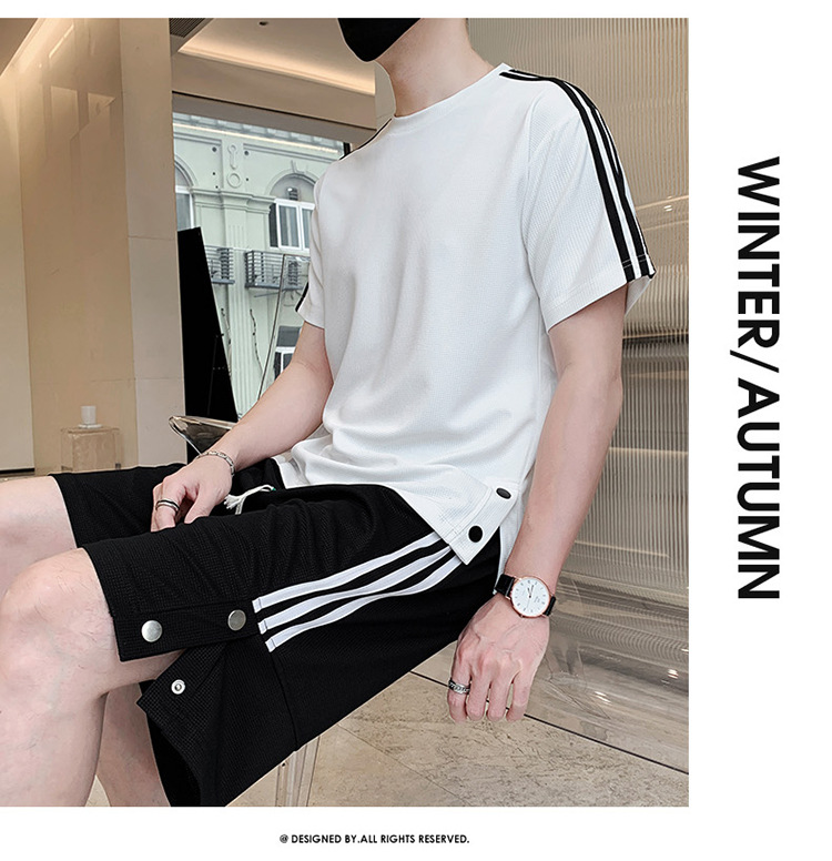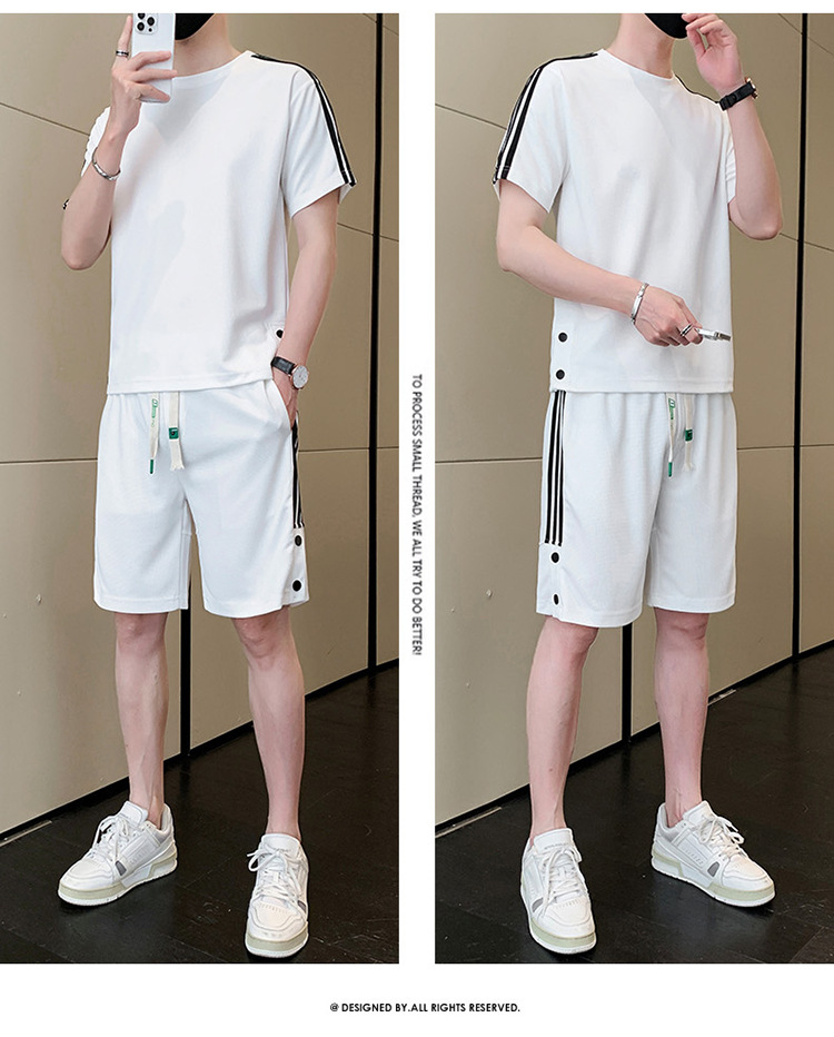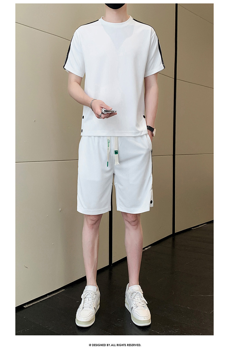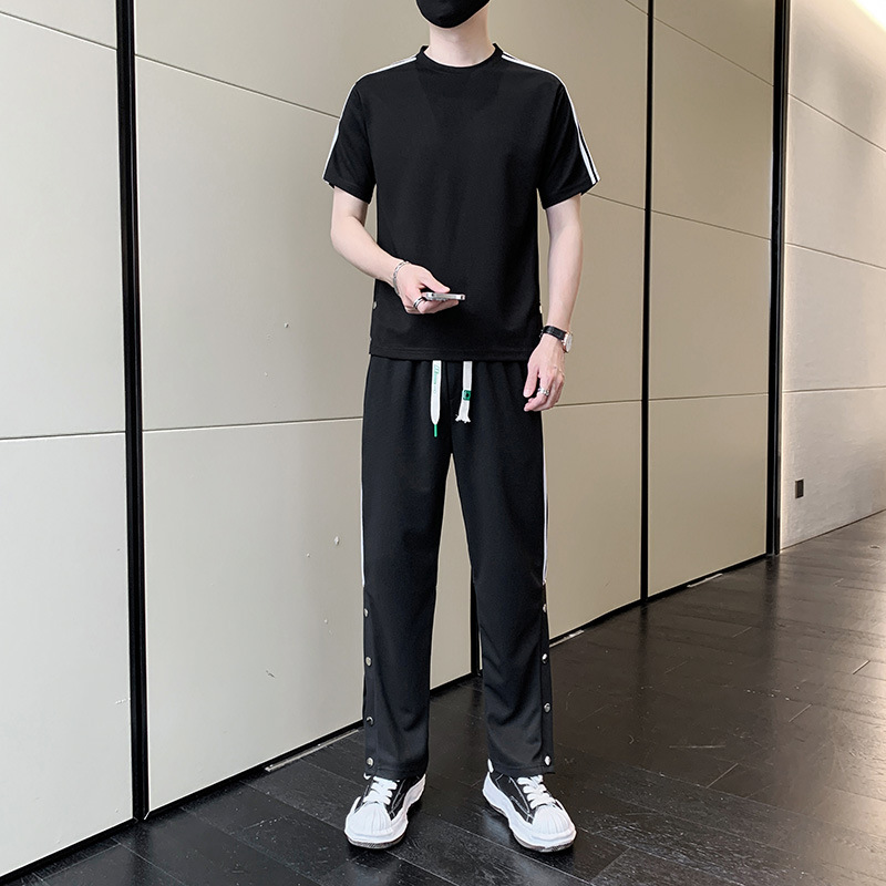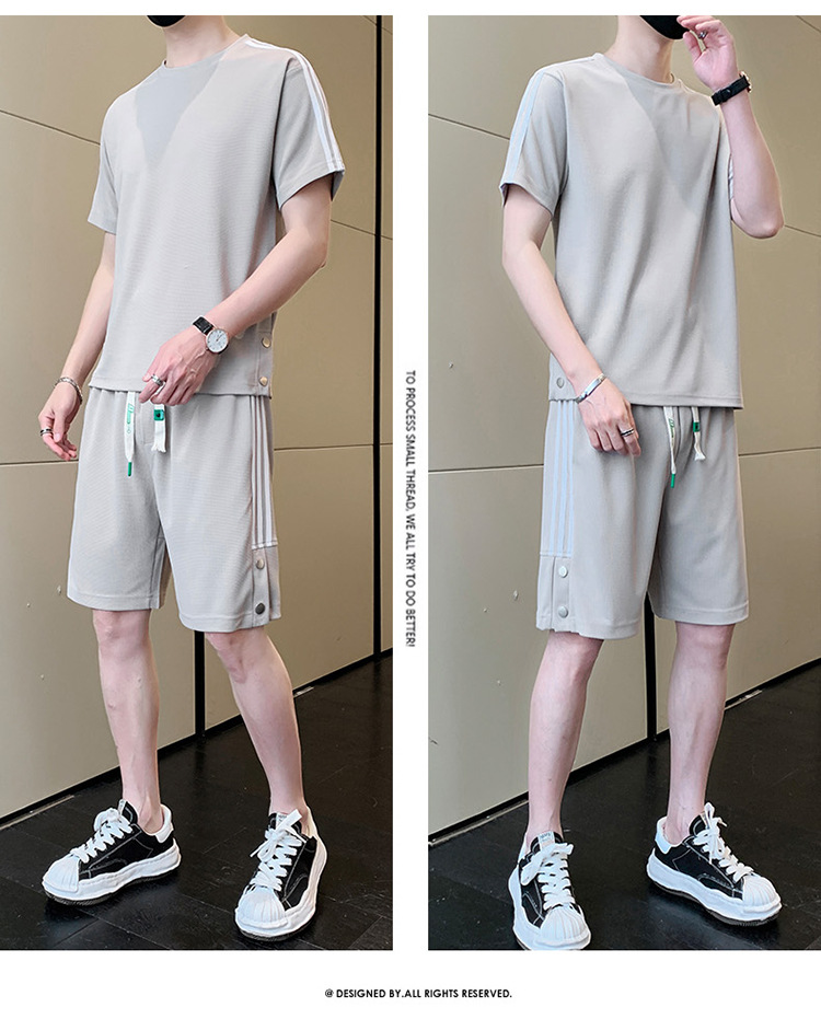 여름 새로운 스포츠웨어 반팔 티셔츠 스포츠 플러스 사이즈 세트 트렌디 한 남자 더피 핸섬 세트 느슨한 반바지 M-8