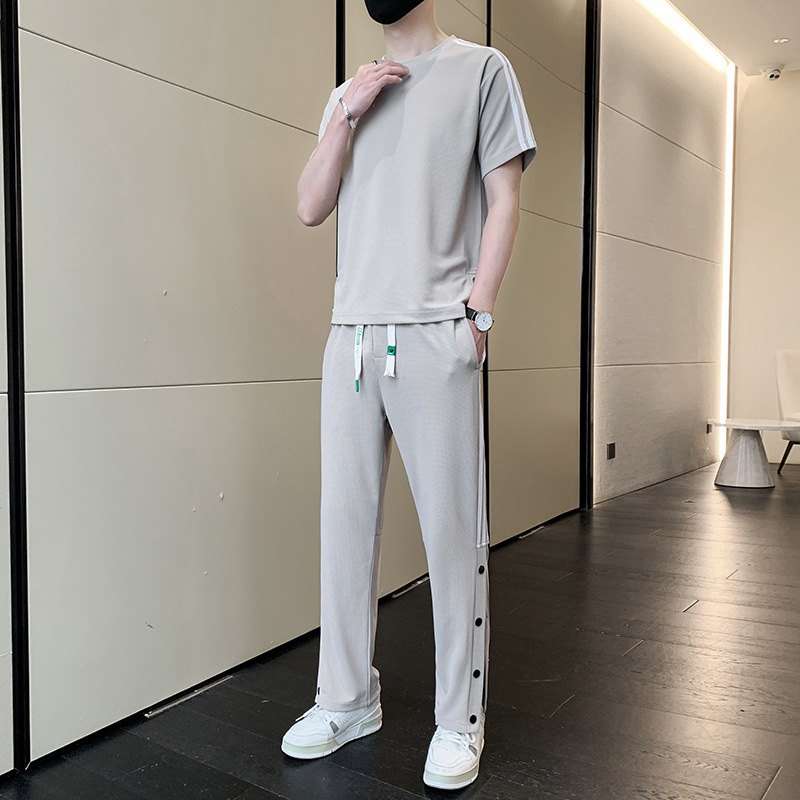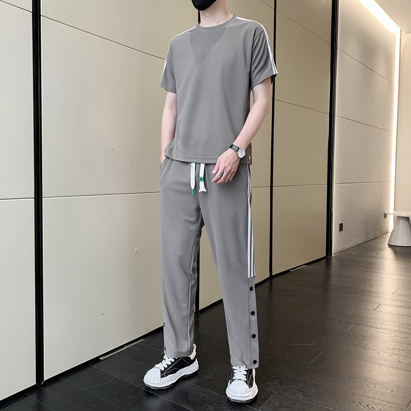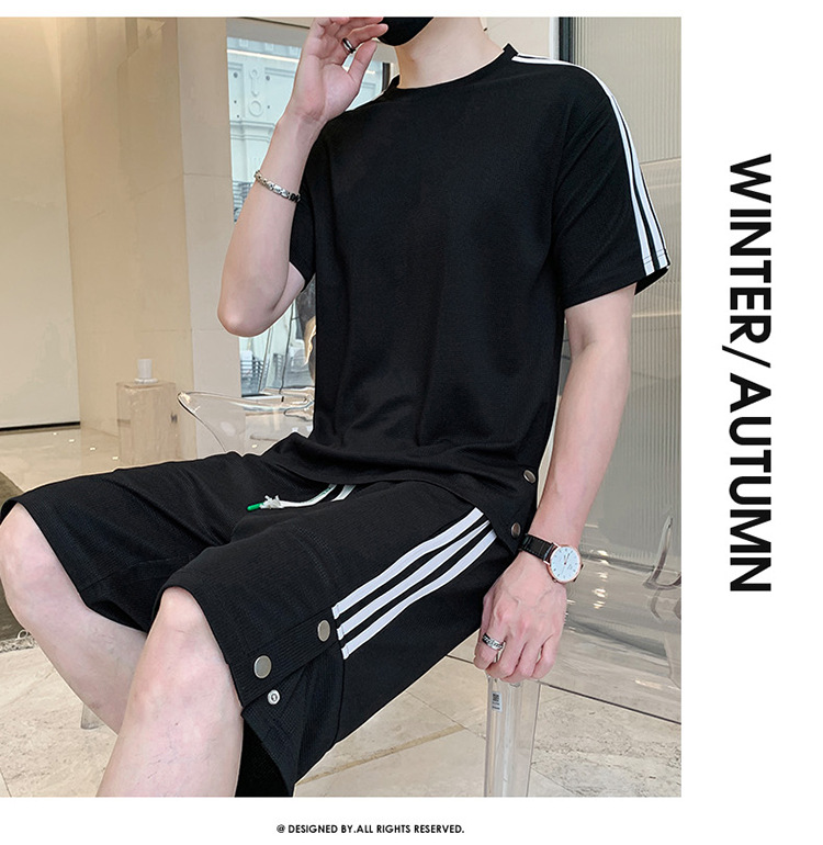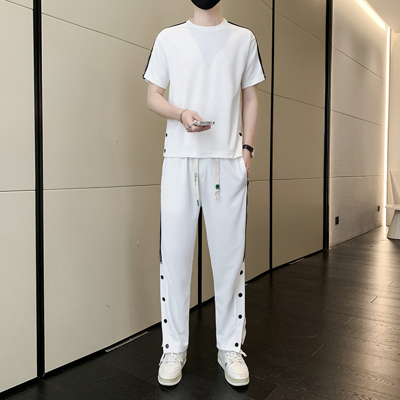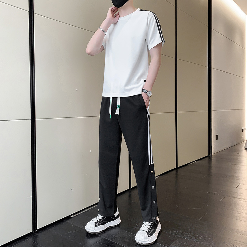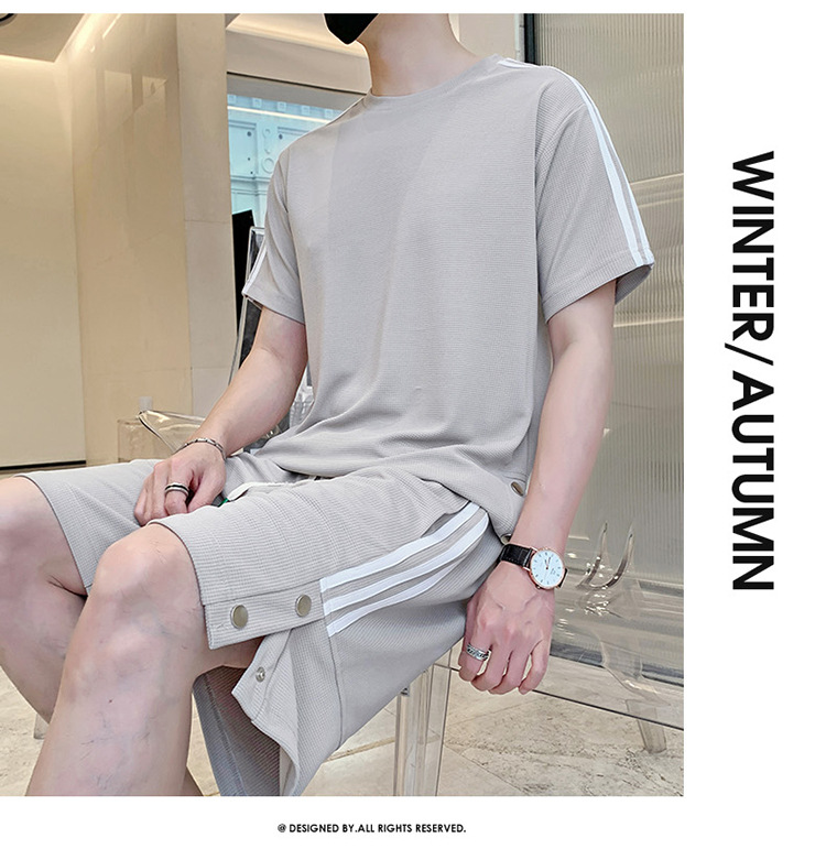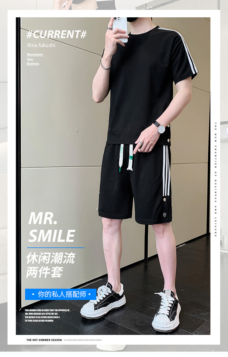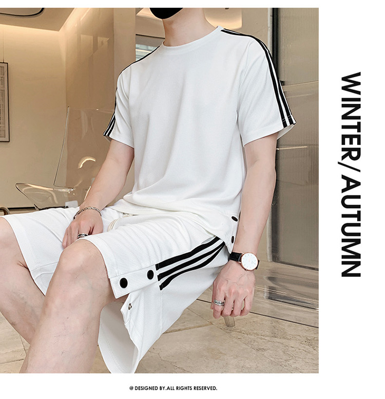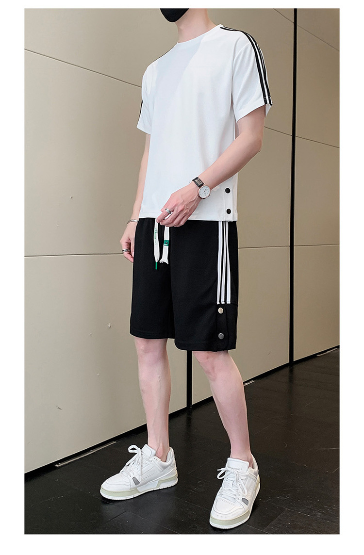 여름 새로운 스포츠웨어 반팔 티셔츠 스포츠 플러스 사이즈 세트 트렌디 한 남자 더피 핸섬 세트 느슨한 반바지 M-8