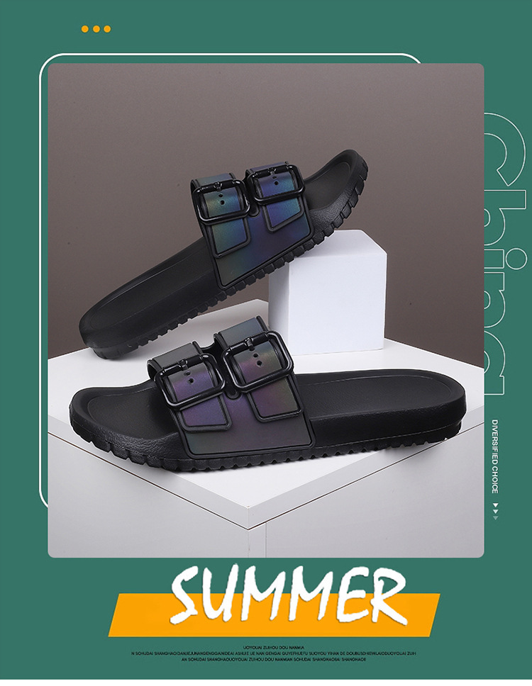 간단한 남성용 샌들과 슬리퍼 트렌디 한 레이저 그라디언트 랜덤 인 스타일 커플 샌들 외부 착용 캐주얼 패션 비치 슬리퍼