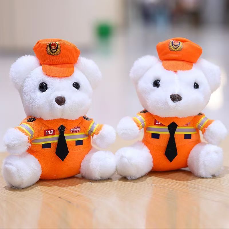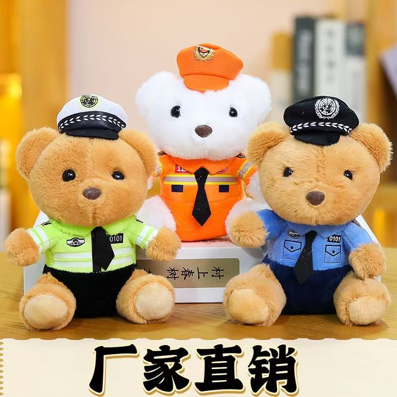 귀여운 교통 경찰 곰 펜던트 봉제 장난감 경찰 화재 곰 인형 가방 매달려 인형 키 체인 인형스토어 가기