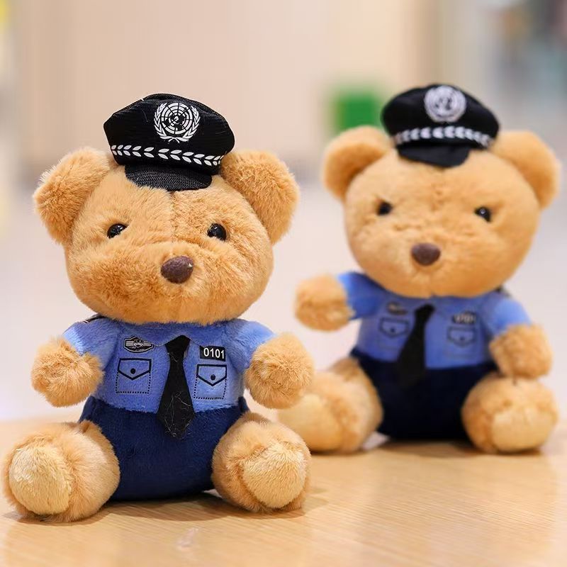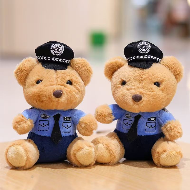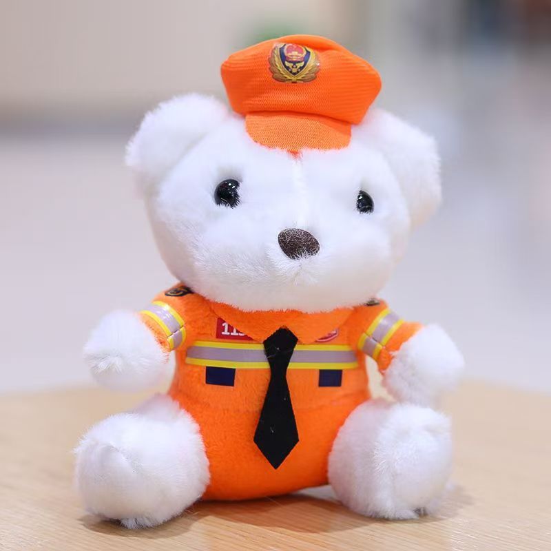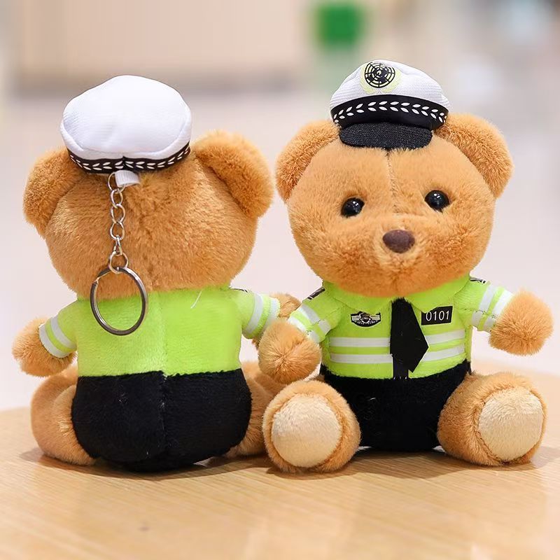 귀여운 교통 경찰 곰 펜던트 봉제 장난감 경찰 화재 곰 인형 가방 매달려 인형 키 체인 인형