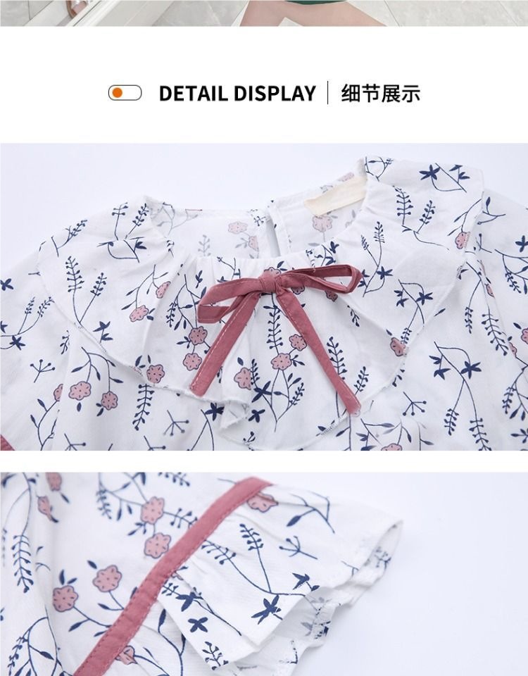 소녀 반팔 티셔츠 세트 시폰 셔츠 2023 년 여름 새 여름 중대형 아동복 느슨한 소녀