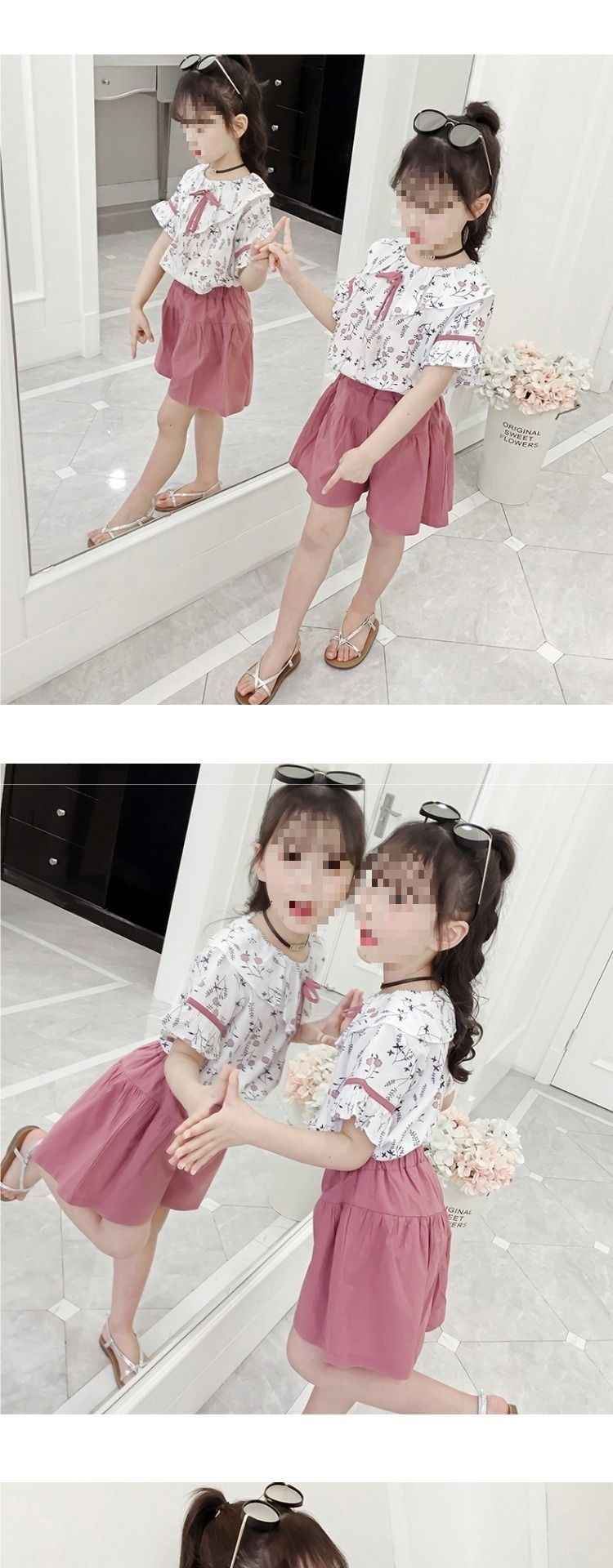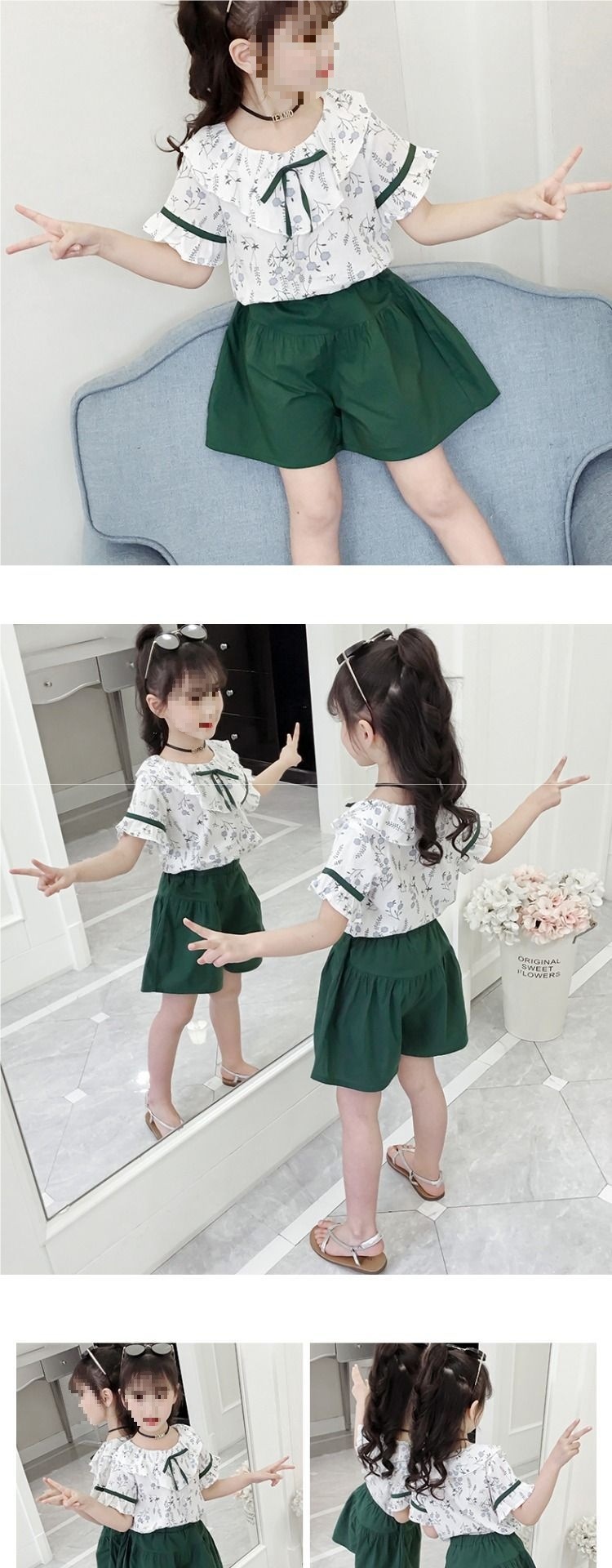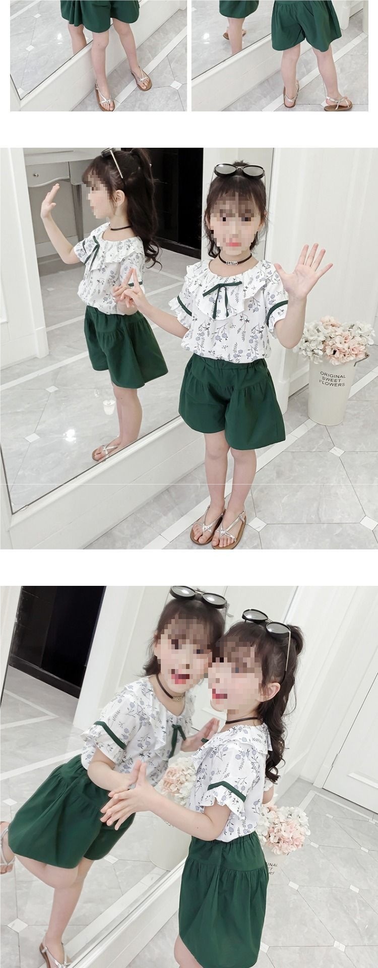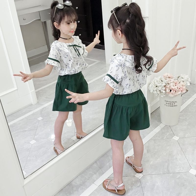 소녀 반팔 티셔츠 세트 시폰 셔츠 2023 년 여름 새 여름 중대형 아동복 느슨한 소녀스토어 가기