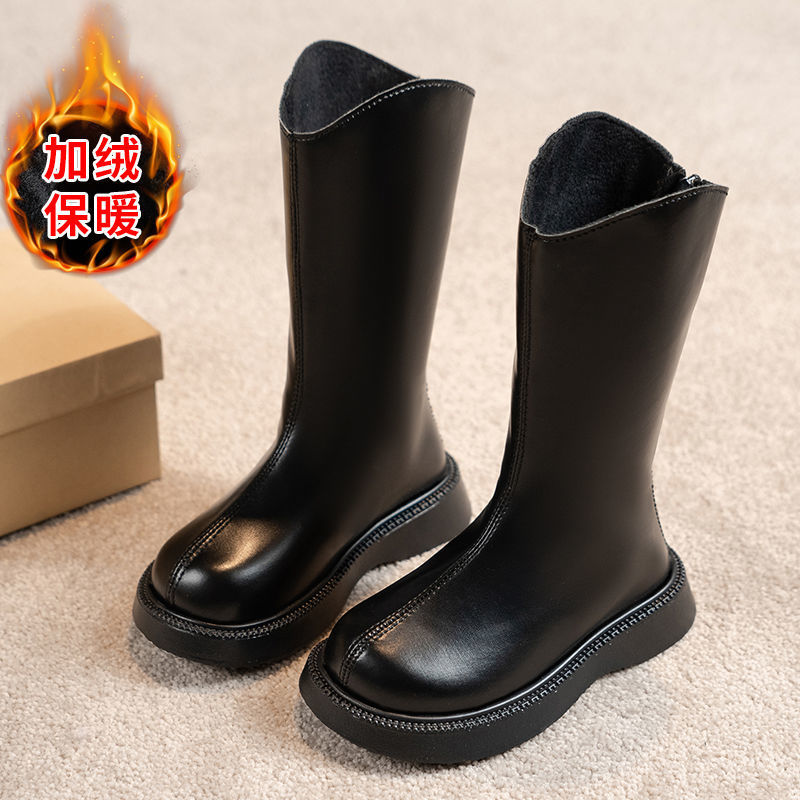 소녀의 봄과 가을 2024 높은 부츠 마틴 부츠 새 겨울 기모 코튼 어린이 어린 소녀 특허 가죽 신발 부츠스토어 가기